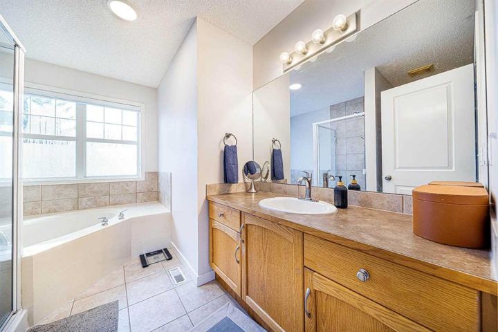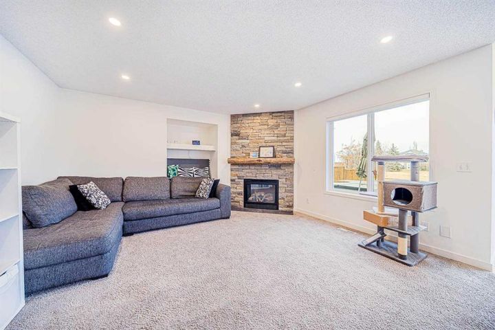Welcome to this well-maintained family home in Lake Chaparral, offering over 2,436 sq ft of total finished living space, with a bright and practical layout, plus full access to the year-round lake amenities. The main floor features an open living area, a functional kitchen with plenty of storage, and a dining space that leads directly to a large backyard deck—ideal for everyday living and entertaining. Upstairs offers three comfortable bedrooms, including a spacious primary suite with a walk-in closet, private ensuite, and upgraded automatic blinds. A versatile bonus room adds flexibility for work or family use. The finished basement provides a cozy recreation room, an additional bedroom, and a full bathroom. The home has seen valuable updates including a newer hot water tank, a new furnace with humidifier and UV air purification (2025), new dishwasher, microwave, and kitchen faucet (2025), automatic blinds on the main floor and primary ensuite, CCTV system, a newly installed water softener, replaced roof and siding, and air conditioning for added summer comfort. Outside, a convenient shed provides extra storage for tools and equipment, and the attached double garage completes this practical family home. Situated on a quiet, family-friendly street close to schools, parks, shopping, and Lake Chaparral facilities, this property offers comfort, convenience, and an excellent community lifestyle.