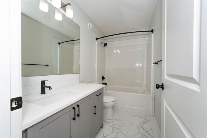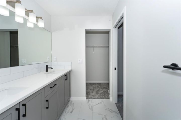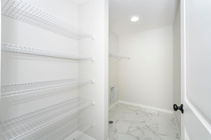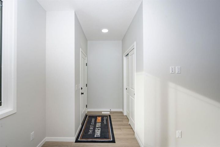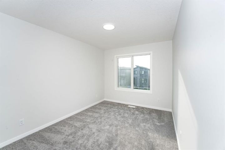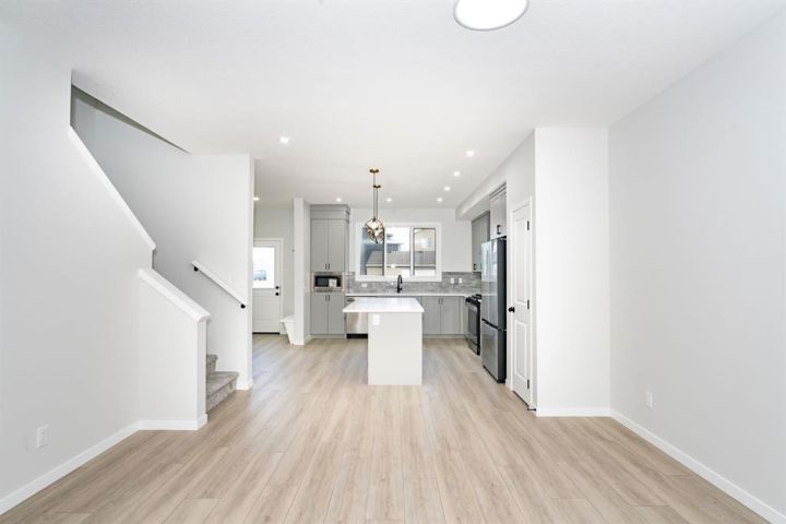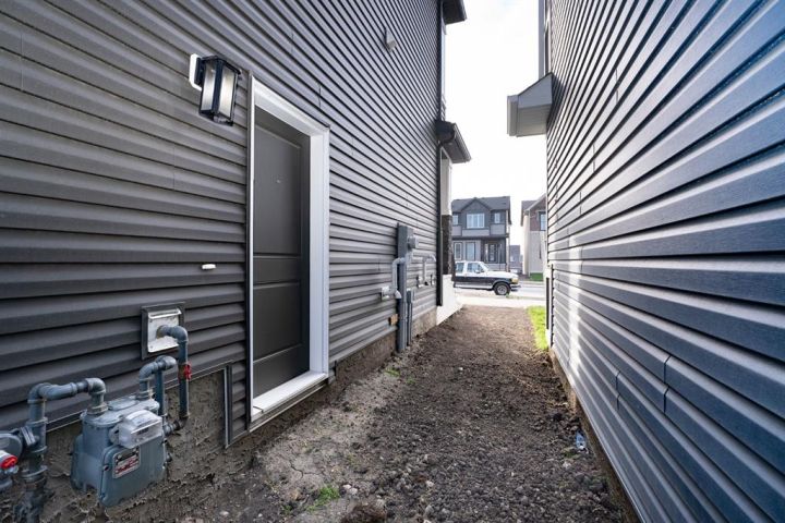 Welcome to this beautifully finished 1,738 sq ft home in the vibrant community of Livingston. Designed with modern living in mind, this three-bedroom, two-and-a-half-bath property combines style, comfort, and function. The main floor features 9-foot ceilings, luxury vinyl plank flooring, and a bright open-concept layout, perfect for everyday living and entertaining. The chef-inspired kitchen is complete with quartz countertops, extended upper cabinetry, stainless steel appliances, a built-in microwave, a chimney hood fan, and a knock-down ceiling finish. Upstairs, you will find three generously sized bedrooms, including a primary suite, a spa-like ensuite with dual sinks and a walk-in shower, and a spacious walk-in closet. A full bathroom and a convenient laundry room with extra shelving complete the upper level. Plenty of natural light and thoughtful upgrades throughout add to the home’s appeal. A separate side entrance provides direct access to the unfinished basement. With its modern finishes, functional layout, and sought-after location, this home is an ideal choice for families.