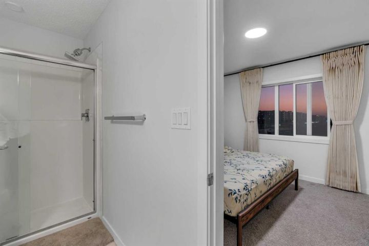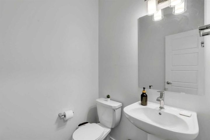 Welcome to this rare 2024-built corner-unit townhome in the family-friendly community of Redstone, offering 1,577.66 sq ft above grade. This home is part of a 4-plex block, a valuable feature in this development where many other buildings are 5-plex layouts—resulting in fewer shared walls and a more private, quieter living experience. Positioned toward the rear of the project, the home enjoys reduced traffic and a peaceful residential setting. The main level includes a spacious foyer, a versatile office/den, a utility room, and direct access to the double attached garage. The second floor features a bright, open layout with a generous living room, dedicated dining area, and a functional kitchen with pantry and great counter space, along with a convenient 2-piece bathroom. The upper level offers three well-sized bedrooms, including a primary suite with a walk-in closet and 3-piece ensuite, as well as two additional bedrooms, a full 4-piece main bathroom, and upper-floor laundry for everyday convenience. Large corner windows provide excellent natural light throughout the home. Located close to parks, pathways, transit, shopping, and with quick access to Stoney Trail, this property combines space, comfort, and exceptional value in a highly desirable Redstone location.