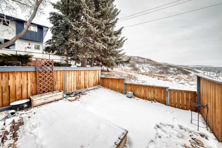This beautifully updated East End townhouse backs onto an undeveloped area, offering stunning Bow Valley and river views with no rear neighbours. Start your mornings enjoying the sunrise with a coffee while deer and local wildlife pass through. The open main floor features hardwood floors, a bright living room, maple cabinetry, and an updated kitchen with a breakfast bar, stainless steel appliances, and tile backsplash, plus a generous dining area that opens to your private yard. An updated main-floor half bath adds everyday convenience. Freshly painted throughout, the upper level offers three spacious bedrooms and an updated 4-piece bathroom. The lower level is an unspoiled basement providing ample storage or the potential for an additional family room. Pets are welcome in this well-managed condo with a healthy reserve fund. Walkable to the Bow River, Historic Downtown, Spray Lakes Centre, shops, and restaurants—just move in and enjoy the Cochrane lifestyle!