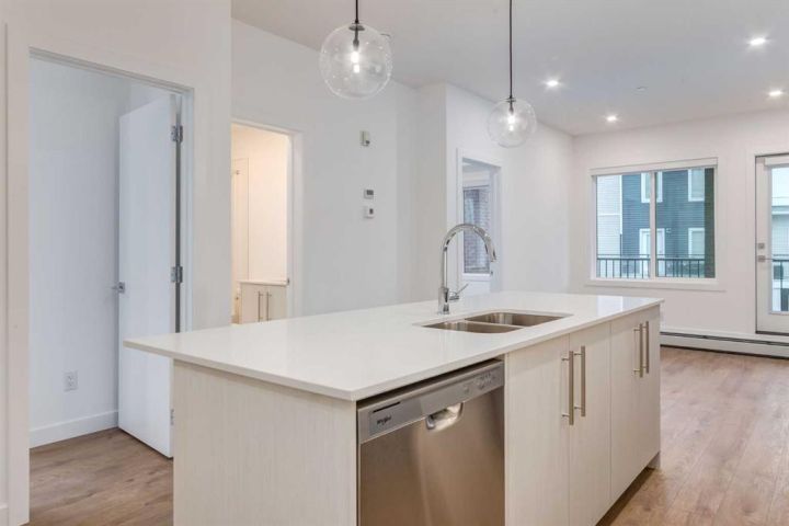Welcome to Lockwood — this rare, larger 3-bedroom, 2-bath corner unit is available! Complete with 2 titled parking stalls which are conveniently located right outside of the main doors to the building, in the growing community of Chelsea, Chestermere. Steps from parks, pathways, and Chestermere Lake, with shopping and dining close by, this home offers unmatched convenience and lifestyle. This rare floor plan features an oversized south-facing balcony overlooking the green space/park—a standout feature that provides exceptional extra outdoor living and entertaining space. Inside, enjoy an open-concept layout, luxury vinyl plank flooring, and a bright, airy feel throughout. The kitchen includes full-height soft-close cabinetry, stainless steel appliances, quartz countertops, and a large eat-up island. The primary bedroom offers a walk-through closet and 3-piece ensuite, with two additional bedrooms and a 4-piece main bath completing the functional layout. Building amenities include a fitness centre, owners’ lounge, and bike storage. This move-in-ready home delivers outstanding value.