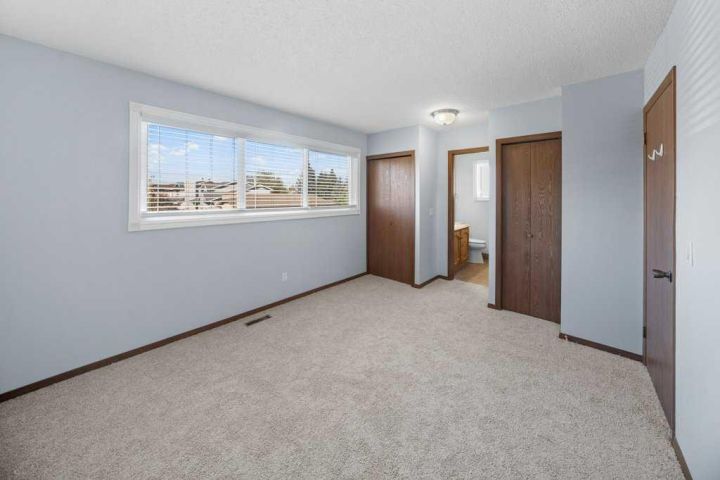 LOCATED ON A QUIET STREET, SUNNY SOUTH FACING YARD, AND OVERSIZED DOUBLE GARAGE! Welcome to this charming family home in the heart of Woodbine! Tucked away on a quiet street, this beautifully maintained detached home sits on a huge pie-shaped lot with a sun-filled south-facing backyard — the perfect space for kids to play and for family gatherings. Enjoy the new fence and deck, oversized double garage with 220V, and newer windows for peace of mind. Inside, you’ll find a warm and functional layout with a formal living room, formal dining room, and a cozy family room featuring a wood-burning fireplace. The home has been freshly painted and offers new carpet throughout, giving it a bright and welcoming feel. The kitchen features plenty of cupboard space and opens onto the breakfast nook. A half bath and main floor laundry complete this level. Upstairs, there are three good sized bedrooms and two full bathrooms, including a private ensuite in the primary bedroom. The fully developed basement provides even more living space with a media/games room, a fourth bedroom, and lots of storage — perfect for growing families. Located within walking distance to parks, schools, the community ice rink, and Fish Creek Park, this home combines comfort, community, and convenience with quick access to the ring road and major amenities such as Costco. Numerous updates and so much more, this is the perfect place to make lasting memories. Don’t miss your chance to call this beautiful Woodbine home yours!
