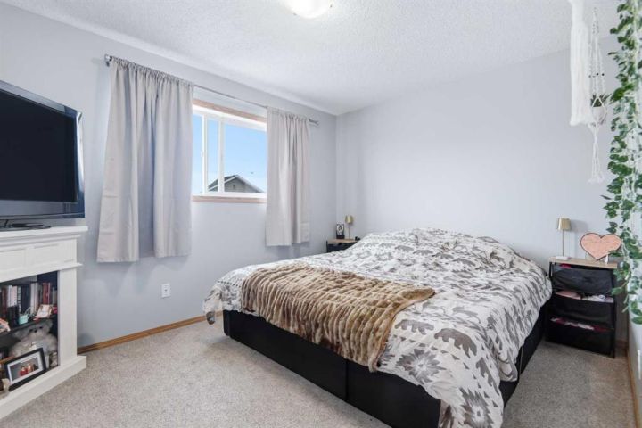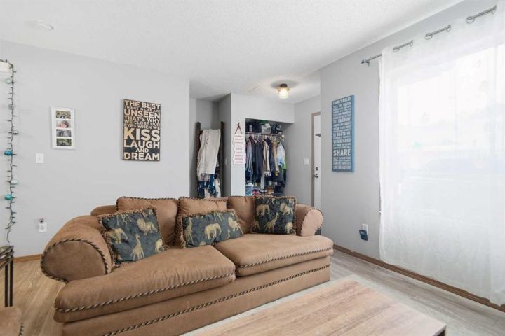 Welcome to this inviting three bedroom condo located in the desirable community of Johnstone crossing the perfect place to call home or add to your real estate portfolio. You’ll love the convenience of being close to shopping, parks, walking paths, and quick access to Highway 2, making it ideal for everyday living. Step inside and you’re greeted by a bright and comfortable living room featuring a large front window that fills the space with natural light. The vinyl plank flooring throughout the main level adds warmth and charm while being easy to maintain. Toward the back of the home, you’ll find a functional kitchen and dining area, perfect for hosting family dinners or casual get togethers. A convenient two piece bathroom and main floor laundry complete this level. Upstairs offers three well-sized bedrooms and a four piece main bathroom, providing plenty of space for a growing family or guests. Outside, you’ll appreciate two assigned parking stalls located directly in front of the unit a small but valuable feature that makes life that much easier. Whether you’re a first-time buyer, downsizer, or investor, this home offers excellent value in a great location.