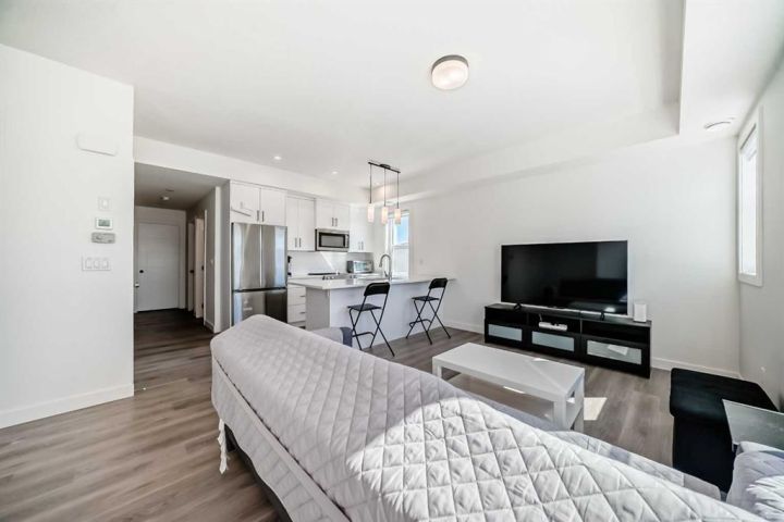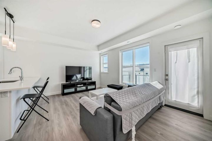 New 2024 townhome is now available! Privileged corner upper unit with better privacy and facing direction, this condo unit also features 2 spacious bedrooms with one of them having an ensuite, an open and sunny balcony, an attached garage and a private laundry room. Well-lit kitchen featuring quartz countertop, next to it is a spacious and bright living room sharing the stunning views of the balcony. The dining nook is besides and spacious enough for 4-6 seats and a dining table. Private balcony big enough for tables and barbeque stove with gas line provided. The primary suite includes a 4-pieces ensuite, the home also features a secondary bedroom, a secondary full bathroom, and laundry/utility room. East, South, West are windowed so this suite has full supply of sunlight especially from the West. Aspen landing center featuring gas station, shopping center, grocery store are just 5 minutes walk. This townhome is ideal for young couple, come check this out!