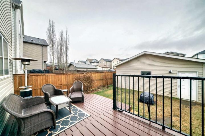 Welcome to the vibrant, family-friendly community of Reunion! This beautifully updated home features fresh neutral paint throughout, 9-foot ceilings, brand-new hardwood flooring, and modern stainless steel appliances. The kitchen offers abundant cupboard and counter space, along with a spacious pantry, and flows seamlessly into the open dining and living areas—perfect for entertaining. Upstairs, you’ll find three comfortable bedrooms. The primary suite includes his-and-hers closets and a private ensuite. The upper level is completed by a second full bathroom and a generous linen closet. Enjoy the private backyard featuring a two-tiered deck and a 22' x 22' garage. The lower level is thoughtfully laid out, with plumbing rough-ins and ready for your finishing touches. This home has seen numerous recent upgrades, including central AC , pot lights on the main floor, a new furnace, and updated appliances throughout. Ideally located on a quiet street close to schools, parks, pathways, ponds, transit, and all amenities—this home is truly move-in ready!
