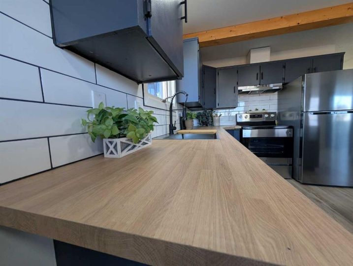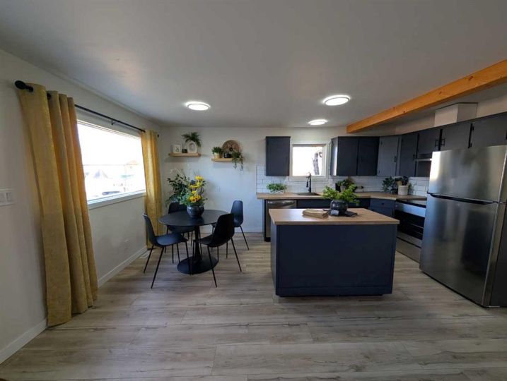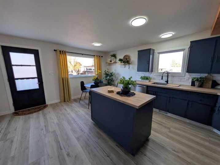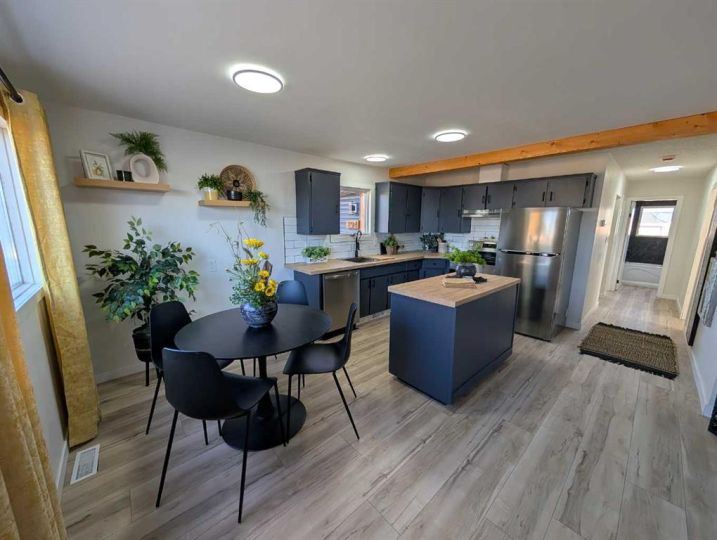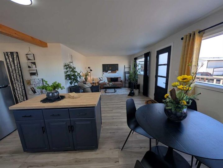 Fully renovated and move in ready! All you need to do is unpack and relax. This beautifully updated 1,044 sq. ft. manufactured home is the perfect fit for first-time buyers, downsizers, or revenue seekers looking for a clean, modern space. The open concept kitchen, dining, and living area feels bright and spacious, featuring a stylish centre island, stainless steel appliances, and plenty of cabinetry for storage. With 3 bedrooms, a convenient 3pc ensuite, and a full 4pc bathroom, the layout offers comfort and functionality for the whole family. The home also includes a dedicated laundry area equipped with washer and dryer for added convenience. A 9x20 addition has been added and gives extra space for the home. Enjoy the outdoors on the partial wrap-around deck, offering plenty of room for morning coffee, barbecuing, or evening relaxation. The driveway provides two off street parking stalls, and two storage sheds give you ample space for tools, bikes, or seasonal items. Move in ready with immediate possession available — don’t miss this great opportunity! $670/month for Lot Fees. All buyers must be approved by the Park Management.