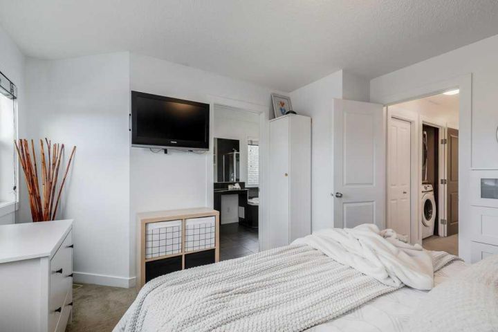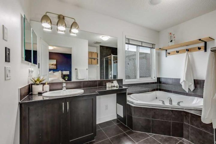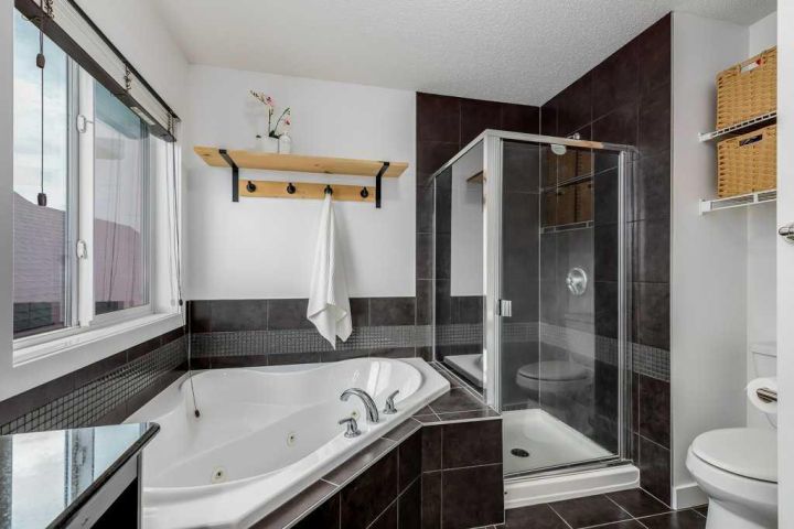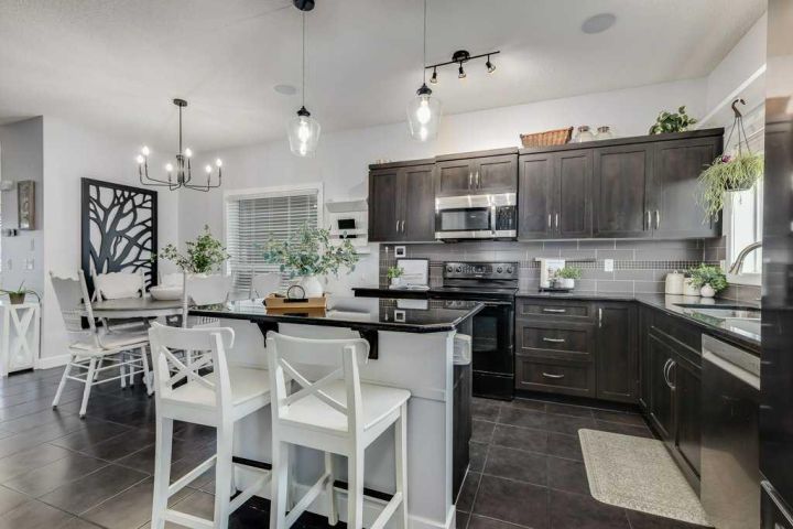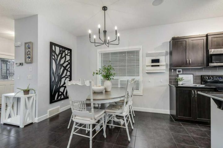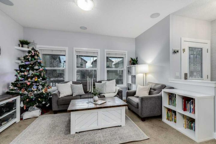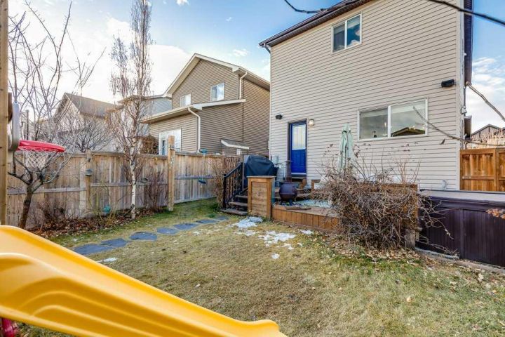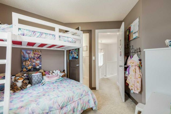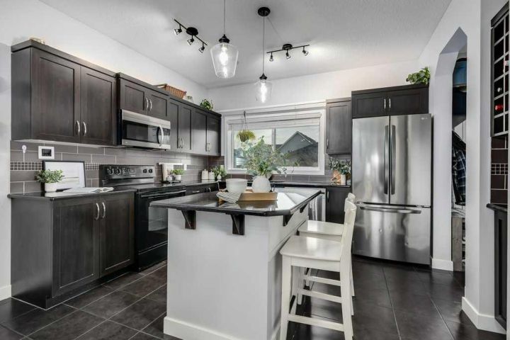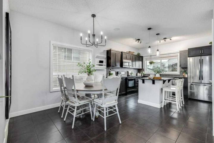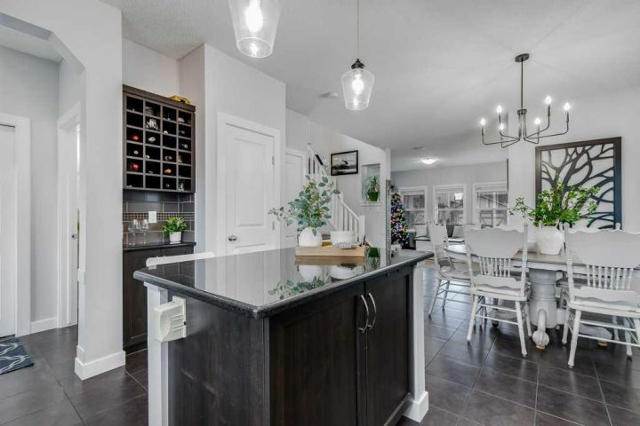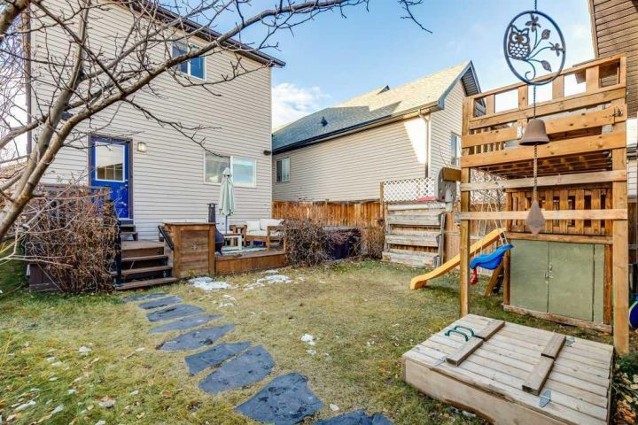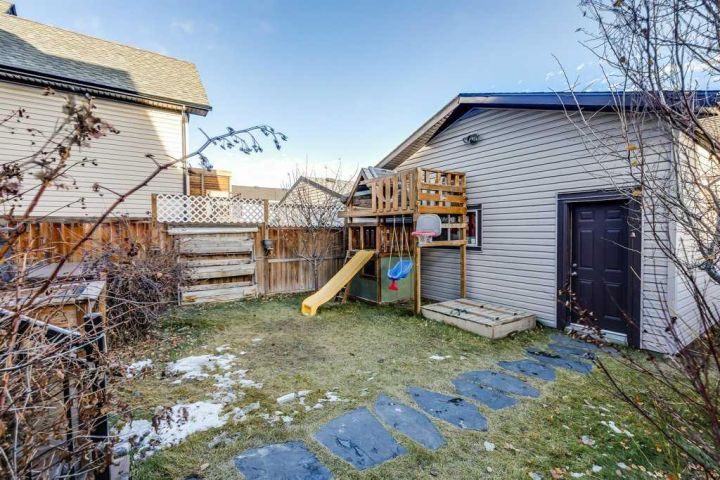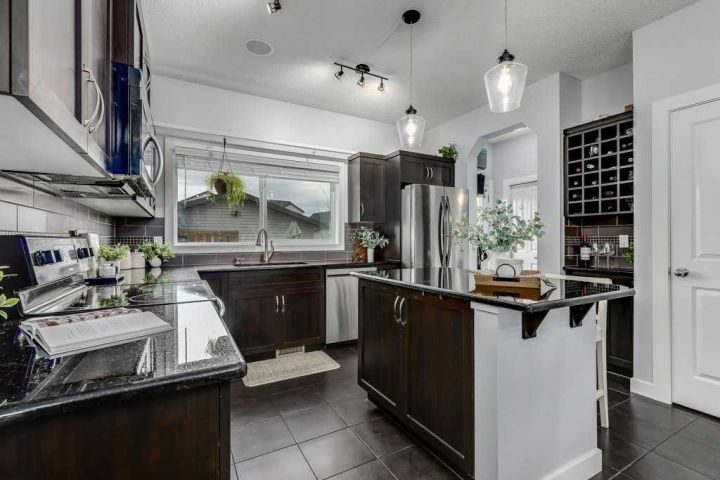 Welcome home to this beautifully kept family home on a quiet street in Airdrie with almost 2200 sq ft of living space! Just a short walk to parks, ponds, skating rink, soccer fields, wide-open green spaces and nearby schools. Step inside to an inviting, open-concept main floor with 9 ft ceilings, built-in speakers, a gas fireplace and an abundance of windows that keep everything bright and cheerful. The kitchen offers granite counters, plenty of cabinet space and a generous dining area, plus a handy desk/workstation area on the main floor. Upstairs you’ll find three comfortable bedrooms, convenient upper laundry, a large full bathroom with door to the bedroom, and a spacious primary suite with a walk-in closet and a large ensuite featuring a jetted corner soaker tub, makeup area, and separate shower. The basement is fully finished with permits and feels like its own retreat, complete with a kitchenette, cool concrete countertops, slate flooring, warm wood (cedar-style) ceilings, a cozy living area, full bathroom, 4th bedroom and great storage. This home offers the potential to easily add a side entrance, allowing access to the basement that way, if desired. Outside, enjoy morning coffee on the charming front veranda, and summer evenings on the back deck surrounded by fruit trees and mature landscaping that provide privacy and a peaceful setting. The heated garage with an extra-tall overhead door offers fantastic space for trucks, toys and projects. Immaculately maintained and move-in ready, this home is set up perfectly for its next family to move in and enjoy. Book a showing today!