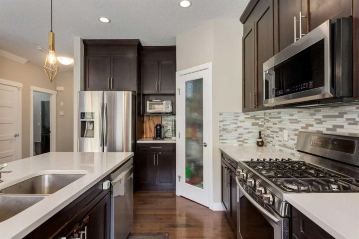 Welcome to 114 Sherwood Mount NW — a beautifully upgraded, move-in-ready home designed for an active family looking to settle in before the holidays. Just a few stairs lead to the raised main level, creating a dynamic and engaging floorplan perfect for busy, on-the-go households. Backing onto a peaceful natural reserve with no neighbours behind, it provides rare privacy, exceptional natural light, and versatile living spaces for every stage of family life. The main and upper levels feature rich hardwood flooring, designer lighting, and an open, inviting design. Large rear windows fill the kitchen, dining room, and family room with warm natural light. The stylish kitchen includes a granite eat-up island, maple cabinetry, gas stove, and corner pantry, while the adjacent dining area flows into the family room with a cozy gas fireplace and expansive automated blinds overlooking the serene green space. Step onto the rear deck—complete with a gas line for your BBQ—and enjoy year-round views of the nature reserve. Upstairs, the vaulted bonus room offers an elevated outlook across the street and is perfect for movie nights, playtime, or relaxation. The primary suite is a peaceful retreat with vaulted ceilings, an added transom window for enhanced light, serene views, and a luxurious 5-piece ensuite featuring a corner soaker tub, glass shower, dual sinks, and a bright, spa-like layout. Two additional upper bedrooms are generously sized for kids, teens, or guests. The lower walk-in level provides exceptional flexibility with a newly designed layout that includes a stylish 4-piece bathroom, bright bedroom with large windows, recreation room, and flex space ideal for hobbies, study, or storage. A second staircase leads to an additional vaulted bonus room at the front of the home—perfect as a home office, studio, gym, dance space, or an optional bedroom with full egress windows. With quick access to Beacon Hill Shopping Centre—including Costco, Home Depot, medical offices, restaurants, and more—daily errands become effortless, while nearby parks, paths, and playgrounds add to the family-friendly appeal. This upgraded, versatile, light-filled home offers exceptional value and stands out as an ideal choice for an active family seeking privacy, space, and convenience in the heart of Sherwood.