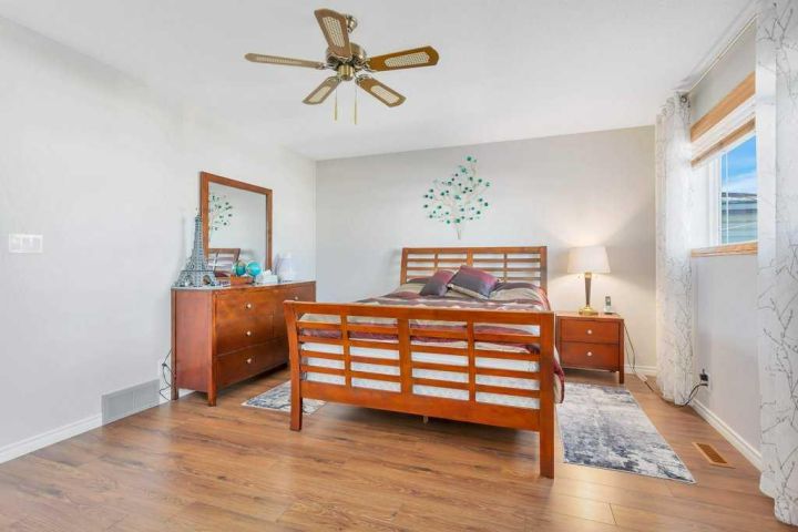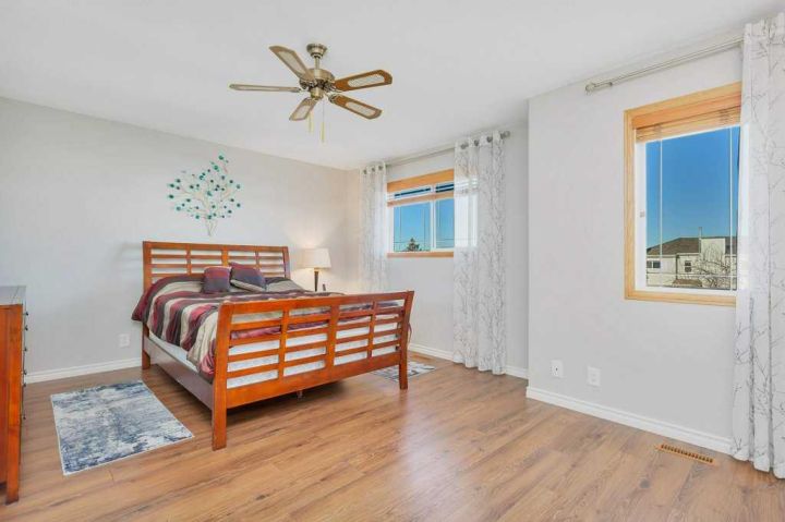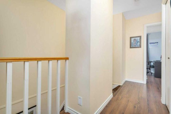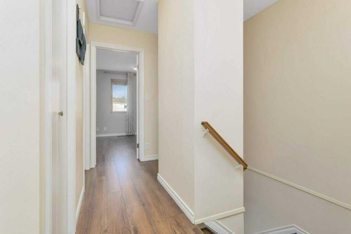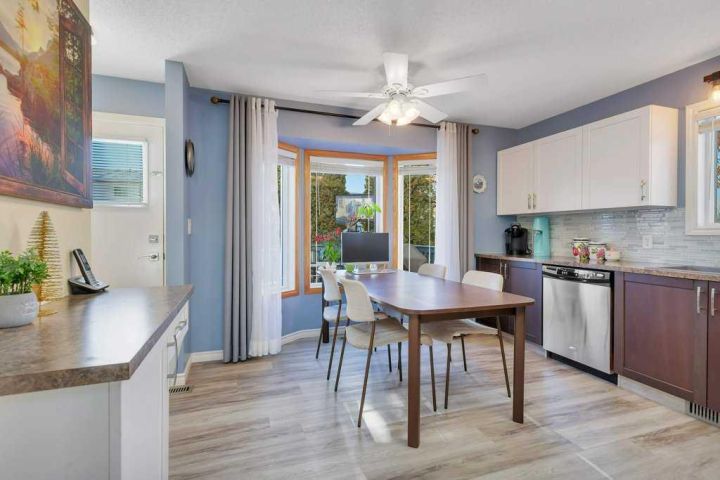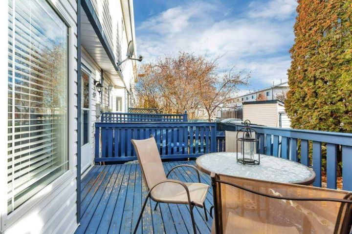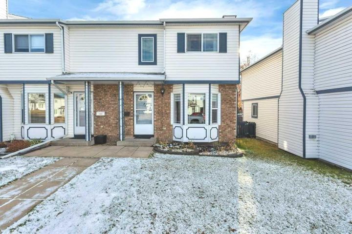 EXCITING OPPORTUNITY IN EASTVIEW ESTATES! Beautifully updated end unit 3 bedroom, 2.5-bath townhouse that boasts pride of ownership. From the moment you step inside, you'll be greeted by a spacious and inviting living room, highlighted by laminate floors and a bright bay window, perfect for relaxing evenings or family gatherings. At the rear of the main level, the open-concept kitchen and dining area provide an ideal space for entertaining and is highlighted with updated cabinets, tile backsplash, and stainless appliances. A convenient powder room and mudroom entry complete the main floor layout. Upstairs, you'll find a generously sized primary bedroom featuring his-and-hers closets and an abundance of natural light. Two additional well-proportioned bedrooms and a 4-piece bathroom complete the upper level. The fully developed basement offers even more living space, including a large recreation area with electric fireplace, three piece bathroom, laundry, extra storage, and carpet throughout. This end unit includes a private back deck surrounded by mature trees and landscaping, offering a peaceful outdoor retreat. Two stall asphalt parking pad at the rear of the property. Other extras include new shingles (2025) and updated vinyl windows. Close proximity to parks, schools, shopping, public transit, and much more. Don’t miss this fantastic opportunity to own a move-in-ready home in a prime location!