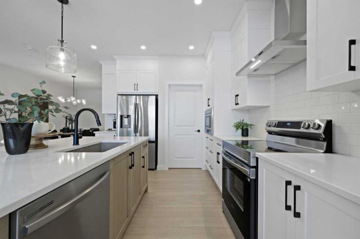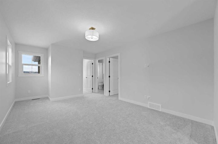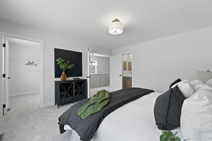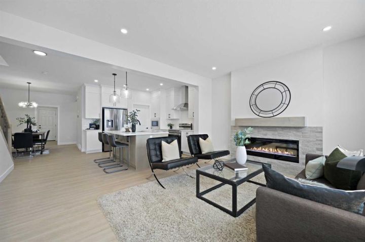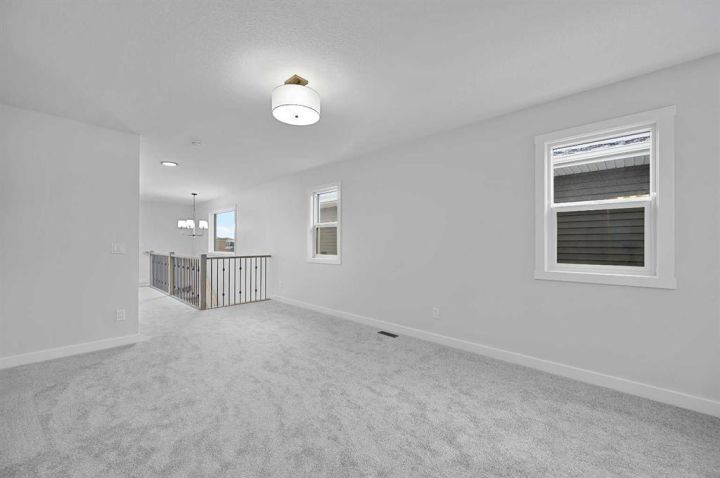 Welcome to 80 Fireside Common, a beautifully designed new build in the welcoming community of Fireside, Cochrane. Offering 2,182 sq. ft. of thoughtfully planned living space, this home combines modern comfort with small-town charm. The main floor features an open-concept design with 9’ ceilings, a spacious great room anchored by a modern fireplace, and a chef-inspired kitchen complete with quartz countertops, a beautiful two-toned cabinet design with stylish black hardware and a walk-in pantry. The dining area flows seamlessly into the living space, while a versatile flex room and a practical mudroom enhance everyday function. Upstairs, a bright bonus room provides a perfect gathering place. The primary suite is a private retreat with a large walk-in closet and an ensuite featuring dual sinks and a walk-in shower. Two additional bedrooms, each with its own walk-in closet, share a full bathroom, and the laundry room is conveniently located on this level. The lower level is built on a 9’ foundation and awaits your personal touch. Exterior details include a Craftsman-inspired elevation and a double-attached garage, offering plenty of parking and storage. Living in Fireside means enjoying tree-lined pathways, parks, playgrounds, and a true sense of community. Local schools, coffee shops, and everyday conveniences are just steps away, while downtown Cochrane is only minutes from your door. With the Rockies nearby and Calgary a short drive away, Fireside offers the best of both worlds: a small-town connection with city access. This brand-new home in Fireside is the perfect choice for families and anyone looking to enjoy both comfort and community in a sought-after location. *Area size was calculated by applying the RMS to the blueprints provided by the builder.