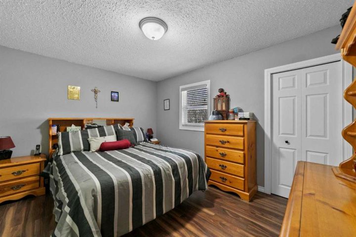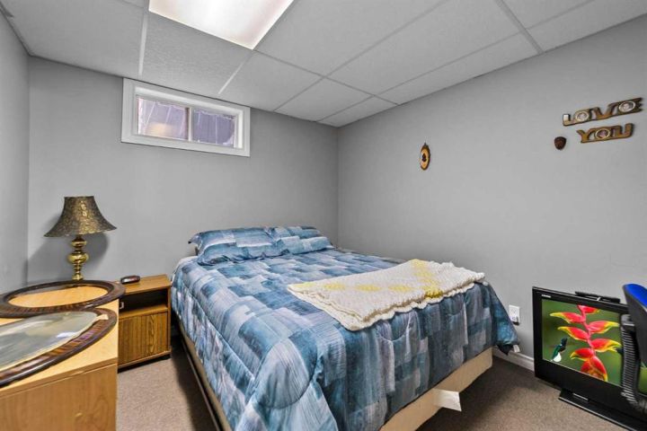 You will want to stop and take a closer look at this beautifully maintained home. Over the past couple of years, it has been thoughtfully updated with new siding, windows, bathrooms, fresh paint, upgraded flooring, and a spacious new deck. The generous back entry welcomes you inside from the low maintenance covered deck, creating a warm and inviting first impression. As you round the corner, the home opens into a bright kitchen and dining area filled with natural light. The kitchen features a large island complete with a convenient pullout counter that creates an ideal spot for a cozy breakfast nook. From here, step into the second dining area and the main living room, a comfortable and open space perfect for gatherings or quiet evenings at home. The main floor includes two well sized bedrooms and a beautifully updated four piece bathroom. Downstairs, you will find a roomy family area that offers an excellent place for relaxation or entertainment, along with an additional bedroom, a functional three piece bathroom, and an impressive amount of storage. Outside, the property provides plenty of room for a garden or outdoor projects. There are four storage sheds to accommodate all your tools and equipment, as well as a single detached garage for additional convenience. This home offers a wonderful blend of comfort, updates, and usable space both inside and out.