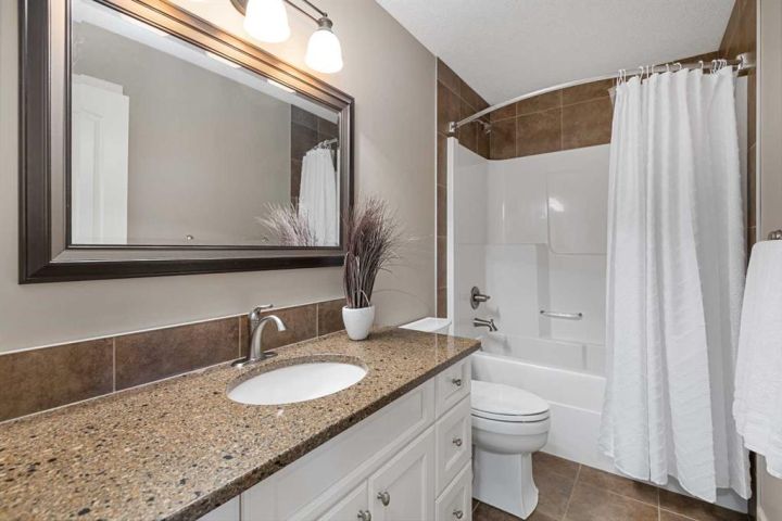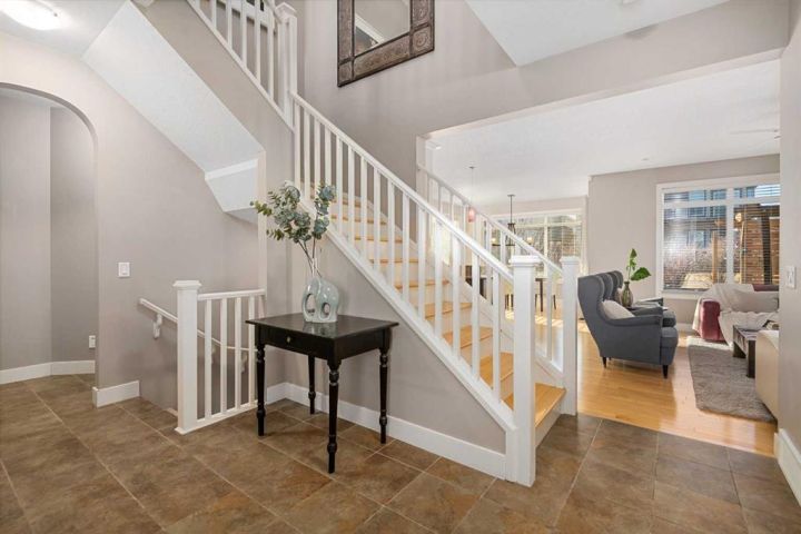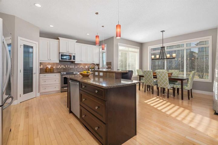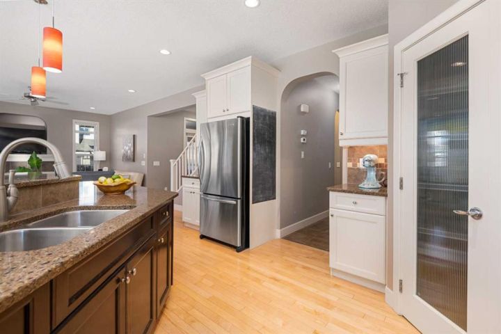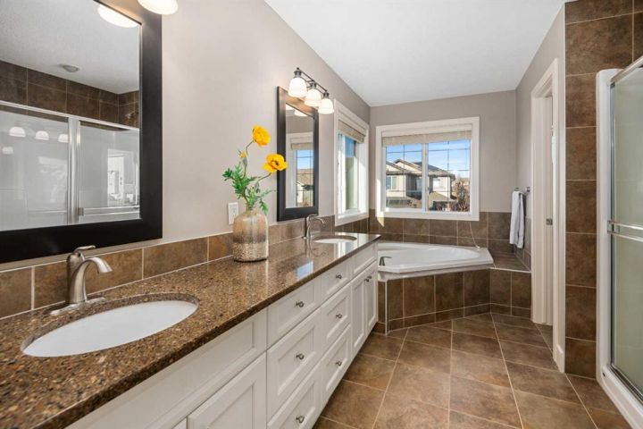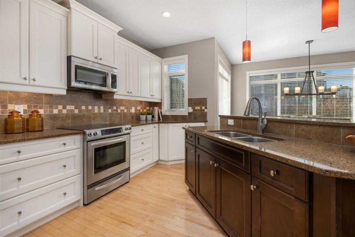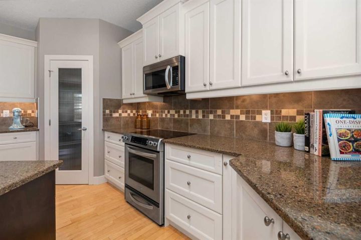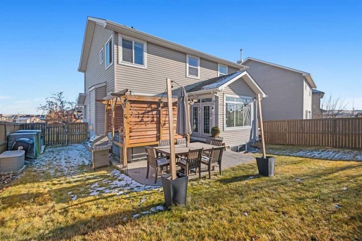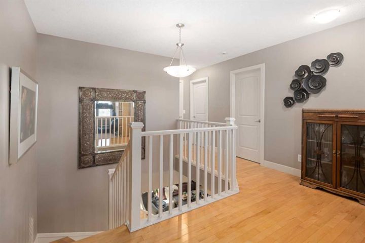 Welcome to your new home on a sunny corner lot in Westridge! As you step inside, you are greeted by a large entrance featuring ceramic tile floors that lead you to a versatile main floor office. This space has French doors and a transom windows for extra light, making it the perfect spot for work or study An expansive living room with large windows and gas fireplace creates a cozy space on a chilly evening. You will appreciate the white kitchen, equipped with upgraded cabinets, quartz countertops, stainless steel appliances and under-counter task lighting. There is plenty of counter space and cupboards as well as a pantry. The breakfast bar is a great place to relax over morning coffee. The adjoining dining area features more oversized windows that overlook the private backyard, where trees and shrubs offer added privacy. The backyard is great for entertaining, complete with a pergola and concrete aggregate patio. Unwind after a long day in the hot tub. The functional, thoughtfully designed main floor also features a convenient laundry room and a powder room. The second floor bonus room is bathed in natural light and features vaulted ceilings. The primary bedroom is a true sanctuary, with another vaulted ceiling, a spacious layout with large walk in closet and an 5-piece ensuite bathroom. Indulge in the double vanities with quartz counters, a double shower with a bench, and a relaxing corner soaker tub. Two additional kid-friendly bedrooms and a well-appointed 4-piece bathroom complete this level, along with extra storage options provided the linen closet and a dedicated storage closet in the main bath. The unfinished basement presents a blank canvas, offering lots of storage space and the perfect opportunity to create the additional living area of your dreams! You’ll love the impressive upgrades throughout, including crown mouldings, 9-foot ceilings, and hardwood floors. There is a new, high efficiency furnace to keep you comfortable this winter. This lovely family home has an ideal location, backing onto a walking path, and is just minutes away from schools, playgrounds, green spaces, and convenient shopping options. Experience the perfect blend of comfort, style, and functionality. Quick possession is possible – be home in time for Christmas!