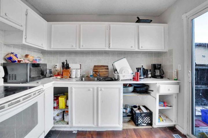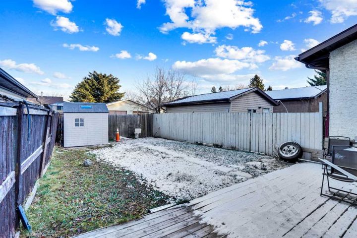 Three bedroom starter home, conveniently located within walking distance to 2 schools, and minutes from parks and the community centre, as well as shopping an public transportation. Home is SOLS AS IS, and possession is negotiable. Nice open living/dining room plan on main floor, large kitchen with patio doors to huge east facing back yard. Upstairs hosts 3 spacious bedrooms, huge 4 piece bathroom. Basement level is developed with family room area, workshop and laundry/utility area.