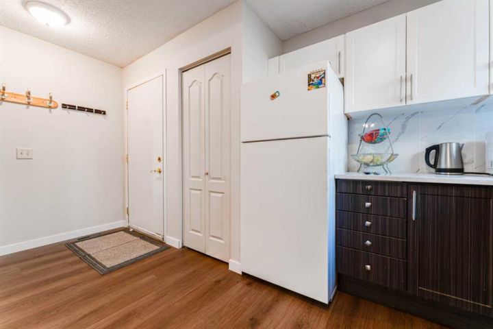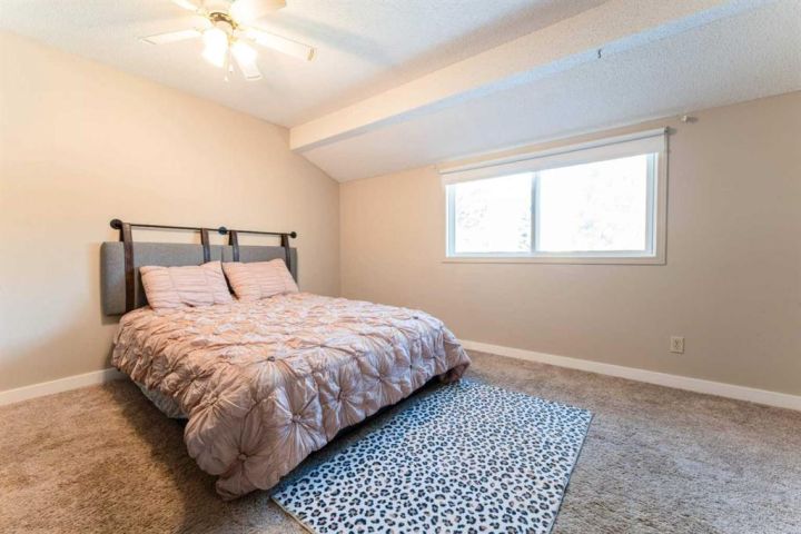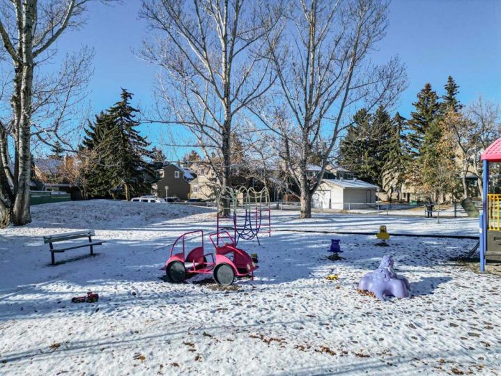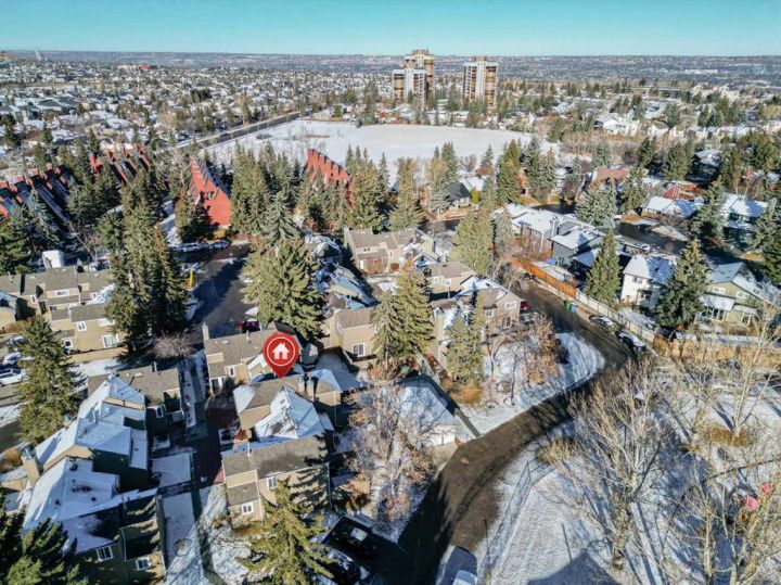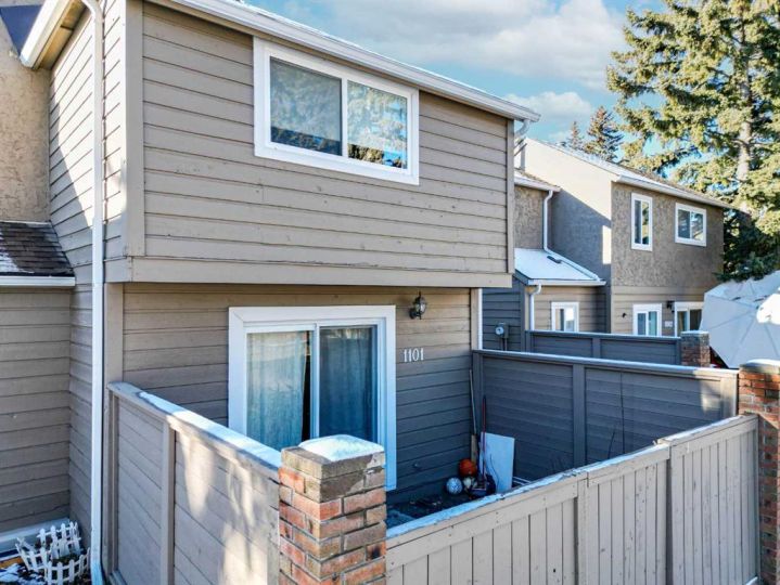 Welcome to this beautifully refreshed 3-bedroom end-unit townhome in the desirable community of Coach Hill in SW Calgary, a mature, family-friendly neighbourhood known for its quiet streets, excellent schools, and unbeatable access to both downtown and the mountains. Step inside and enjoy the bright, open-concept main floor, where the renovated modern kitchen features sleek white cabinetry, updated countertops, and a handy pantry. The kitchen opens onto a warm and inviting family room accented by recently installed premium laminate flooring and an authentic wood-burning fireplace, a perfect place to unwind. From here, walk out to your fully fenced private backyard, ideal for children, pets, or relaxed outdoor living. Upstairs, the hardwood landing leads to three comfortable bedrooms and a fully renovated 4-piece bathroom. The spacious primary bedroom includes dual his-and-hers closets for added convenience. The developed basement expands your living space with a versatile rec room, laundry area, and great storage. With two full bathrooms, the home offers flexibility and comfort for families, guests, or shared living. Parking is easy, with one assigned stall and the option to rent an additional one if needed. Recent upgrades include newer windows, a new hot water tank (2023), brand new LVP flooring, and a well-maintained furnace, giving you peace of mind for years to come. Living in Coach Hill means access to top-rated schools like Olympic Heights School, John Costello Catholic School, and Ernest Manning High School. You’re conveniently surrounded by amenities, including Westhills Shopping Centre, Aspen Landing, Strathcona Square, parks, paths, playgrounds, and quick routes via Bow Trail, Sarcee Trail, and the SW Ring Road. Enjoy a short commute downtown and effortless trips to the mountains. This move-in-ready home combines charm, comfort, and location. An ideal opportunity in one of Calgary’s most established SW communities.