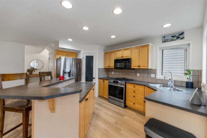 Welcome to this BEAUTIFULLY cared-for 3+1 bedroom, 3.5 bath home offering over 2,000 sq. ft. of developed living space, tucked along a QUIET, TREE-LINED street in the highly sought-after community of McKenzie Towne. This VIBRANT neighborhood is known for its FRIENDLY vibe, WALKABILITY, and countless amenities - LOCAL shops, restaurants, coffee spots, pathways, schools, churches, fitness centers, and convenient public transit are ALL JUST STEPS AWAY. Enjoy your MORNING coffee on the sunny, SOUTH-FACING front PORCH during warmer months. Full of THOUGHTFUL upgrades and TIMELESS style, this 2 Storey home welcomes you with warm-toned Luxury Vinyl Plank (LVP) flooring, UPGRADED railing, MODERN lighting, and a versatile front FLEX space accented by a CONTEMPORARY FEATURE WALL - perfect as a FUN playroom, home office, formal dining area, or anything YOUR LIFESTYLE needs. The living room offers a CHALET-inspired feel with its shiplap details, fireplace, and plush furniture you will want to RELAX and spend time in. As you venture through the home, you will see how WELL the owners have CARED for it. The OPEN kitchen and dining area create a natural gathering hub, featuring a BREAKFAST bar, GAS stove, S/S Fridge, updated lighting, and large PICTURE windows that FLOOD the space with natural LIGHT. Step outside to the SUNNY, fully FENCED backyard with a DECK and grass area - ideal for kids and furry family members to enjoy. A full-size (23.6 ft x 23.3 ft) DETACHED DOUBLE GARAGE and additional street parking complete the exterior features. Up the stairs and on the 2nd level, the LVP continues through all 3 bedrooms. The lovely PRIMARY SUITE has a walk-in closet and spacious ENSUITE with a SEPARATE shower and SOAKER tub. The 2 additional spacious BEDROOMS are styled with CHARMING décor- perfect for kids, guests, or home office use. The FULLY DEVELOPED BASEMENT offers even more living space with 2nd FAMILY ROOM, a flex area ideal for a home gym, a LAUNDRY room, and a GUEST BEDROOM with its own beautifully finished ENSUITE BATH featuring CUSTOM tile and UPGRADED finishes and fixtures. Additional updates include a ROOF replacement on house June 2018, CENTRAL A/C, and a newer HOT WATER TANK. This home has been LOVED, maintained, and THOUGHTFULLY improved over the years – an ABSOLUTE MUST SEE - for anyone looking for a WARM, STYLISH home in a FANTASTIC community. Call your favorite Realtor to view today!