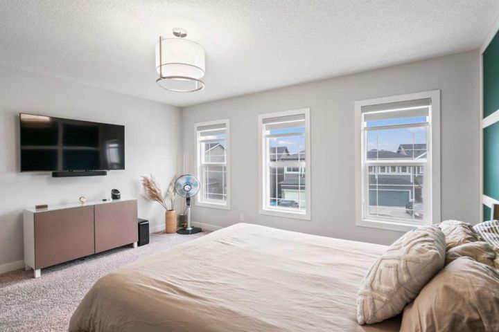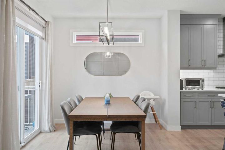 Welcome to your dream home in the vibrant, master-planned community of Seton. This beautifully designed 2,200+ sq. ft. detached family home sits on an impressive lot with a long front driveway and an oversized double garage, offering the perfect balance of space, style and functionality. A covered front entrance welcomes you inside to a bright, open-concept main floor where warm luxury vinyl plank flooring flows seamlessly throughout. The heart of the home is the upgraded chef’s kitchen, showcasing stainless steel appliances, a gas cooktop, built-in oven and microwave, double-door fridge, ceiling-height cabinetry and an expansive island. The open layout connects the kitchen, dining and living areas effortlessly, with large windows filling the space with natural light. A cozy fireplace adds warmth on cooler days, while the walk-through pantry from the garage with a privacy door keeps daily life organized. Upstairs, a spacious bonus room anchors the level, paired with two generous secondary bedrooms. The spa-inspired primary suite features a large picture window, double vanity, stand-alone tiled soaker tub, tiled shower and an oversized walk-in closet. A well-appointed four-piece bathroom completes the upper floor. The fully finished basement expands your living possibilities. It is currently set up as a home theatre and workstation, and the space easily transforms into a games room, fitness area or additional entertainment zone. A full bedroom and four-piece bathroom make it ideal for guests or extended family. Additional Features • Central air conditioning for year-round comfort • Professionally landscaped backyard with a deck for effortless outdoor living • Low-maintenance gravel side yard • Long front driveway and oversized double garage Seton is one of Calgary’s fastest-growing and award-winning communities, renowned for its urban design and exceptional amenities including the South Health Campus, YMCA, movie theatre, shopping, dining and the future Green Line LRT. Here, you are not just buying a home. You are stepping into a thriving lifestyle.