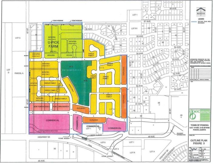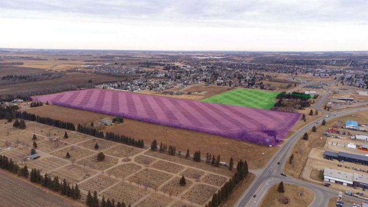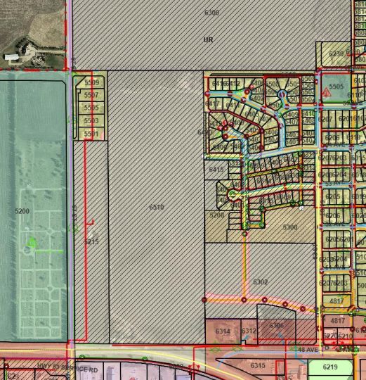 Prime Development Land spanning 70.70 acres with Area Structure Plans, offering a strategic opportunity for land development. The two parcels, 6510 Hwy 53 (Urban Reserve, 53.27 acres) and 6302 48 Avenue (C2 Commercial / Urban Reserve, 17.43 acres), are available for a large contiguous parcel, providing over 70 acres for a master-planned community in Ponoka or can be sold individually. The site features flat topography, excellent development flexibility for staged capital construction, and options for commercial, single-family, and multi-family residential projects. The NW5-43-25-W4 lands offer a short- to medium-term development opportunity in the Town of Ponoka, with existing services nearby, residential neighbourhoods in proximity, and strong frontage potential along key transportation routes. This parcel is uniquely positioned for a mixed-use concept combining commercial, medium-density residential, and single-family housing, with superb access and visibility along Highway 53 and underground services nearby. Explore the supplements for more detailed information on the ASP outline plans, including sanitary sewer and water main concepts, as well as grading and storm water management concepts. Seize this development opportunity now or hold it for the future!