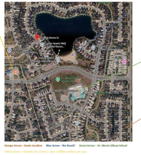 *** OPEN HOUSE - SUNDAY, NOVEMBER 30th - 2 to 4 pm*** Welcome to this stunning, immaculately maintained home in the FAMILY friendly lake community of Crystal Shores. The BEACH, Rec Centre and DR. Morris Gibson school are only a few blocks away. With your purchase of this property your family will receive full beach access with year-round amenities like paddle boats, swimming and ice skating! WHAT AN AMAZING PLACE FOR YOUR FAMILY! Enter through the double attached garage or decorative frosted glass door into a large foyer with ceramic tile floor and an oversized window. The open concept main level is host to a spacious great room with LUXURY vinyl plank floors, tile-surround fireplace, 2 piece powder room, and is complimented with arched doorways and decorative niches. The well-designed kitchen offers beautiful appliances, large island, eating bar and a sunny nook leading out to a large freshly stained deck that overlooks the immaculately landscaped yard. Upstairs you will discover a large bonus room, 3 bedrooms, including a spacious master bedroom with ceiling fan, large walk-in closet, and spa-like 4-piece ensuite with elegant lighting, tile-surround jacuzzi tub and corner glass walled shower. There is also a full 4-piece bathroom upstairs. The basement is functional and has been developed to accommodate a growing family with a large bedroom and a 4 piece bathroom. The Furnace is only one year old. The double garage is large with room for 2 vehicles to park in it and there is also room for 2 vehicles to park outside for a total of 4 excellent parking stalls! This home has almost 2,800 sq. ft. of living area! It is also located close to the Sheep River with a myriad number of walking trails and downtown Okotoks with all its quaint shopping and art galleries! All this and excellent MOUNTAIN VIEWS! The shingles and siding were replaced in 2017. The Central Vac is roughed in. Air vents have been cleaned. The yard has two fruit trees. Quiet, private back yard! Call today to book a private showing.