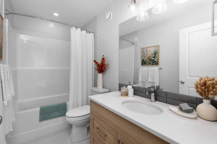 Discover an exceptional opportunity in Chestermere’s newest community, Bridgeport, with the stunning 1802 sq. ft. Raeya Showhome by Trico Homes. This 3-bedroom, 3-full-bath home is loaded with premium upgrades, including a front flex room with a full bathroom, a 2-car detached garage at the rear, and comes fully equipped with all appliances, including a hood fan. Enjoy a spacious rear deck overlooking peaceful pathways and future parks, with quick access to Chestermere Lake and East Hills Shopping Centre. Thoughtfully designed and beautifully upgraded in a prime location. Photos representative.