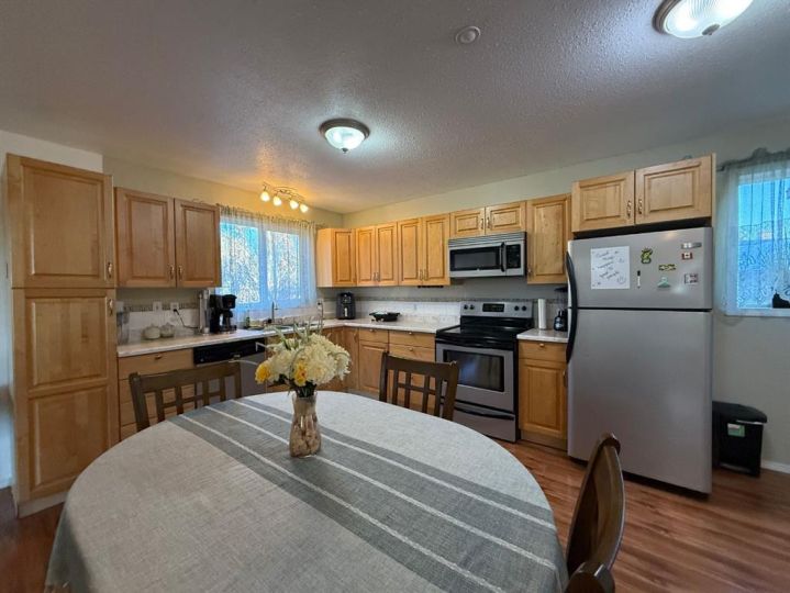On a generous corner lot in a central location with easy access to local amenities, this home offers a perfect blend of serene living and modern convenience. The mature trees that surround the property add an element of warmth and serenity, creating a peaceful, private backdrop for the large front deck and a fenced yard. This outdoor experience is complemented by a detached garage, a must-have for your vehicles, toys, or a dedicated work area. Inside, the home is finished with function in mind, featuring a roomy kitchen that flows openly into the living area, ideal for daily life and entertaining. The potential continues downstairs in the partially finished basement, which is waiting for your personalization and is thoughtfully plumbed for a mother-in-law suite, offering incredible flexibility. Don't wait to explore all the possibilities this wonderful property holds—call today to schedule your viewing