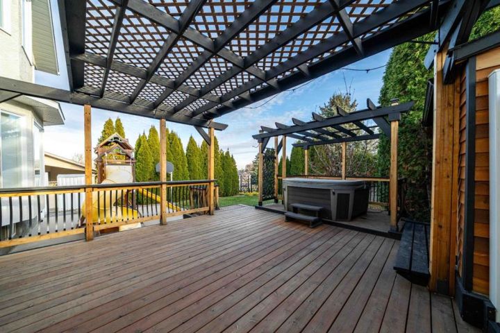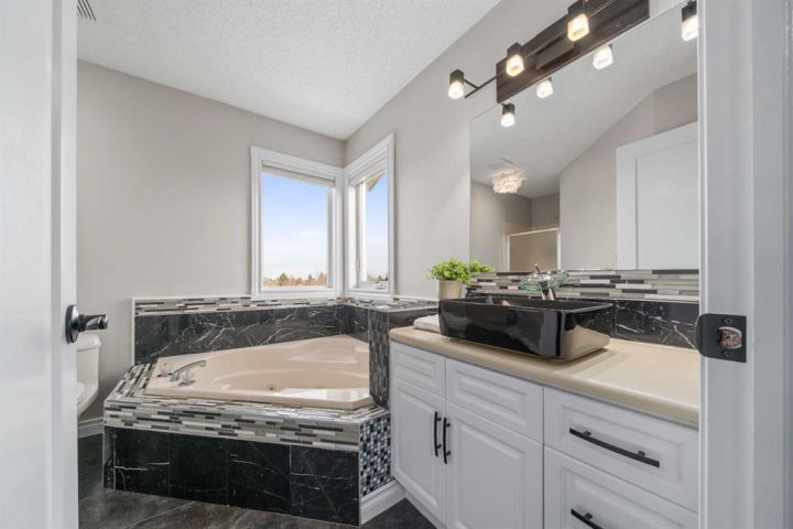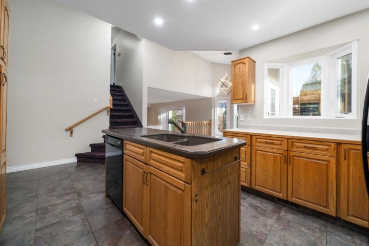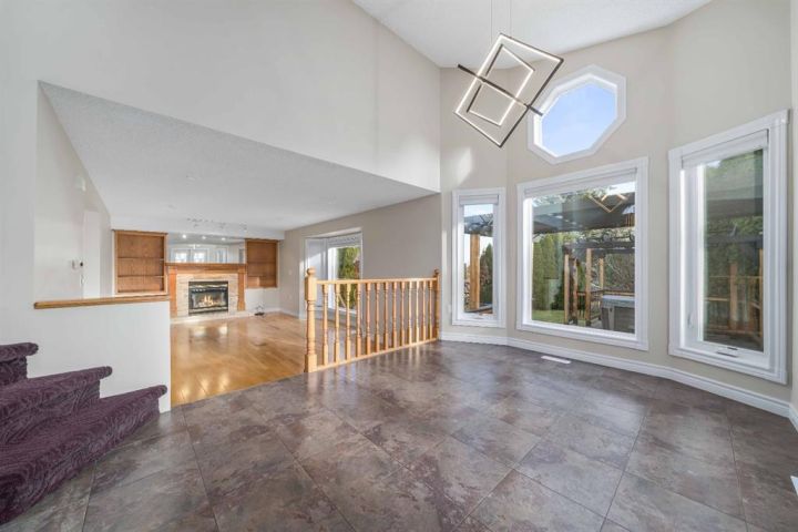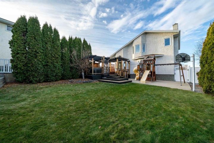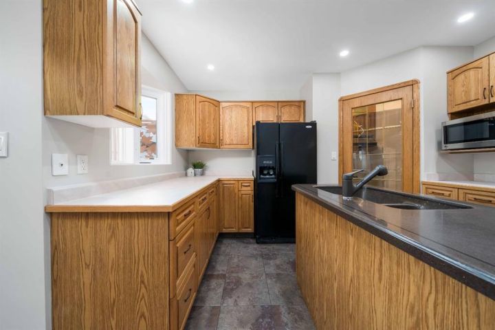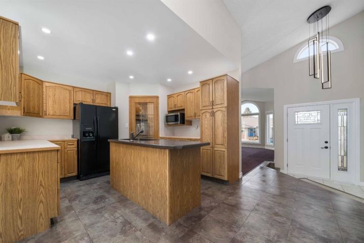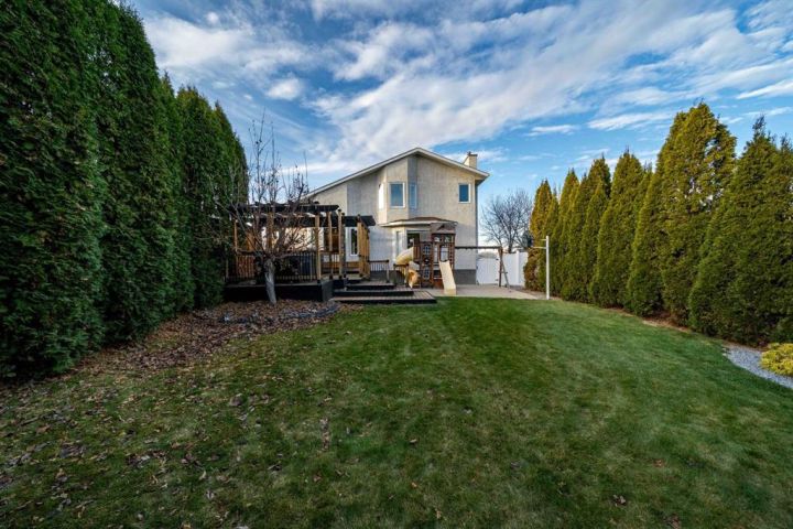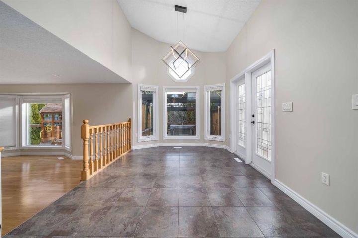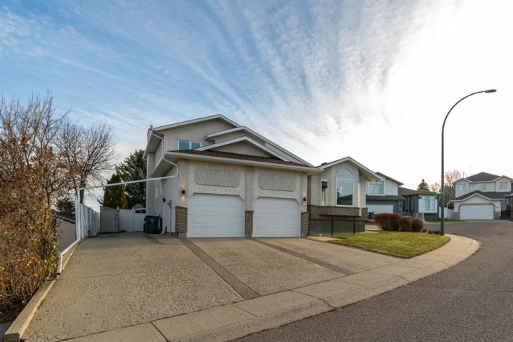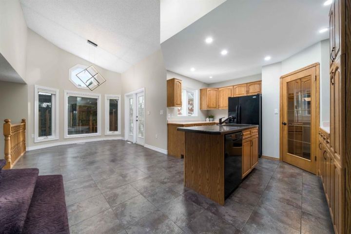 Welcome to this beautiful 2-Storey Split backing onto a green space! Offering 2,024 sq/ft above grade, plus a fully finished basement of 1,195 sq/ft, giving his home a total of 3,219 sq/ft of finished living space! This thoughtfully designed home delivers incredible space, natural light, and a layout perfect for families. The main floor is warm and welcoming with vaulted ceilings, a bright skylight, and a formal living room and dining space at the front of the home. Toward the back, you’ll find the kitchen along with a second dining space, as well as a cozy sunken family room with a gas fireplace, ideal for movie nights. A convenient main-floor 4th bedroom or office, 3pc bathroom, and a laundry room with ample storage provide everyday function. Direct access to the double attached garage is an added bonus. Upstairs features three bedrooms, including a generous primary suite with a 4pc ensuite and walk-in closet, plus an additional 4pc bathroom for kids or guests. The basement expands your living space with a large rec room featuring a second gas fireplace, one bedroom, 4pc bathroom and a den—perfect for hobbies, a playroom, or extra storage. Outside, the yard is private and mature with beautiful trees, a large deck with pergolas, hot tub, concrete patio space, and a good-sized yard to boot. Best of all, it backs onto a green space, giving you a peaceful, open feel. Recent upgrades include: New vinyl windows (2023/24), Deck ~4 years ago, A/C unit ~6 years old, Shingles updated in 2012. This home is spacious, comfortable, and in a desirable location close to the Medicine Hat Mall, lots of restaurants and other shopping. Come see for yourself and take a look at this move-in ready family home, with some big-ticket updates already taken care of!