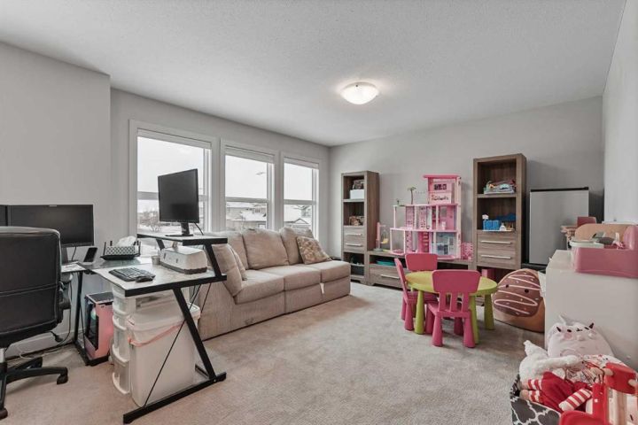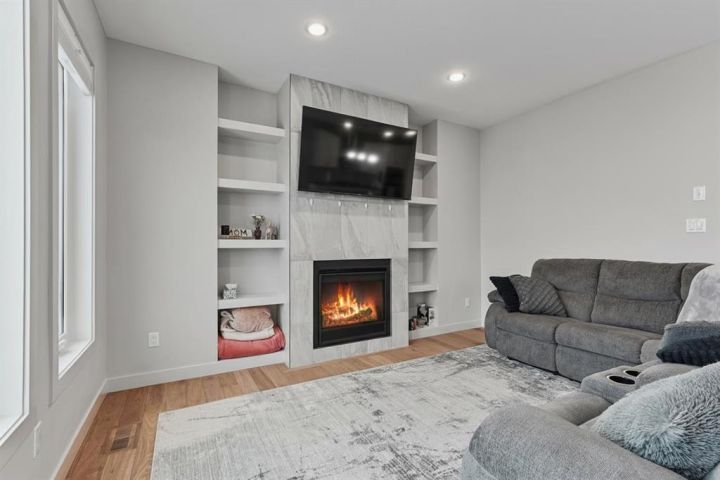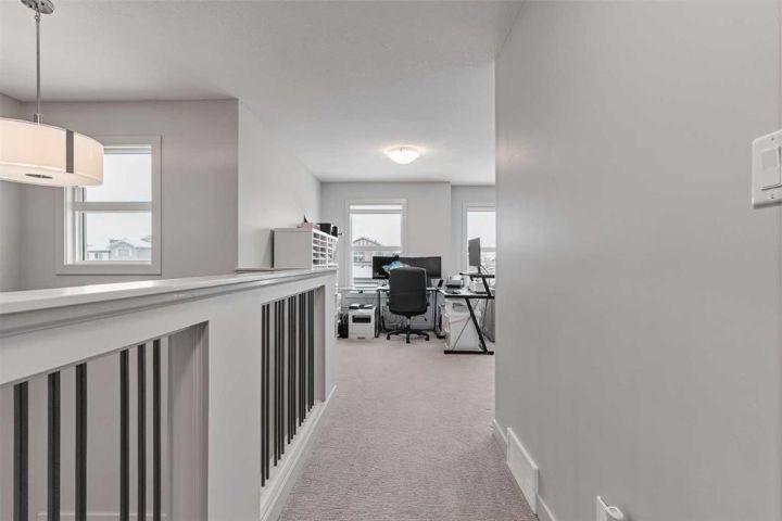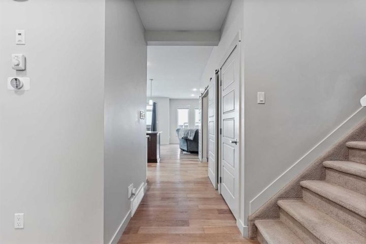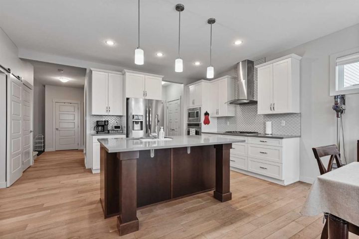 Welcome to this beautiful two-story home in the highly sought-after community of Copperwood. Thoughtfully designed and packed with premium upgrades, this 3-bedroom, 3-bathroom residence offers a perfect blend of comfort, style, and functionality. Step inside to a spacious entryway that sets the tone for the rest of the home. Rich hardwood floors and elegant tile flow throughout the main level, leading you into an open-concept living and dining area framed by stunning mountain views. A cozy gas fireplace adds warmth and charm, creating the ideal setting for family gatherings or quiet evenings in. The gourmet kitchen is a true centerpiece, featuring an oversized island, extended cabinetry, custom blinds, a built-in oven, and a gas cooktop range. The adjacent boot room provides convenient storage for coats, shoes, and everyday essentials while a main floor office behind barn doors gives you accessibility and privacy. Spindle railings add architectural interest as you take the stairs to the upper level. The upper bonus family room overlooking the front views of the home can be a tv room or play room for the kids. The primary suite offers a private retreat complete with a gorgeous 5 piece ensuite and a spacious walk-in closet. Two additional bedrooms and an additional bathroom provide ample room for family or guests. Here you will find the laundry room, making it easy to access for the family's needs. The undeveloped basement is a blank canvas, ready for you to transform into the space of your dreams — whether that’s a home theatre, gym, playroom, or additional living area. With its exceptional features, modern upgrades, and unbeatable location, this Copperwood property is the perfect place to call home.