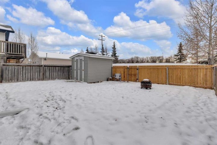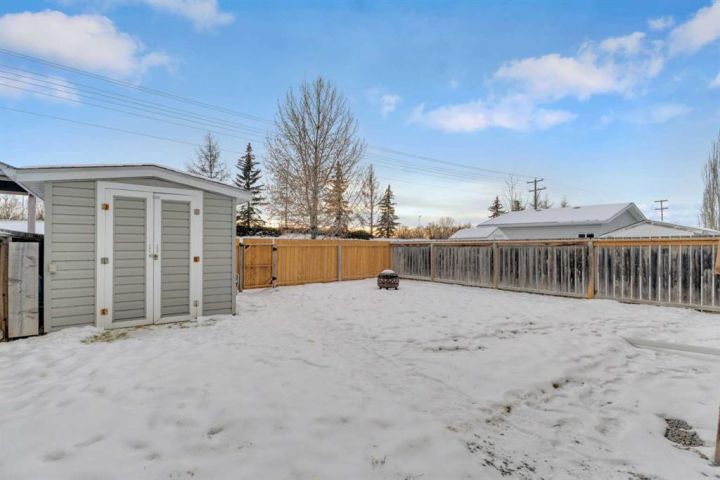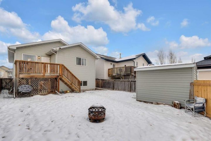 Discover an excellent opportunity to own a well-kept home in the highly sought-after South end of Red Deer just minutes from Starbucks, the Oxbow off-leash dog park, Don Campbell Elementary School, parks, & numerous amenities. The spacious front entry welcomes you with a convenient coat closet and plenty of room to put a seating bench if desired. The main floor offers a generous living room with laminate flooring, leading into a bright kitchen featuring new stainless-steel appliances (2025), a full tile backsplash, and an eating bar. The adjoining dining area provides direct access to the south-facing deck & yard. The fully fenced yard includes a storage shed, off-street parking with alley access, and ample space for a future garage. Completing the main level are two bedrooms and a full bathroom. The lower level is fully developed with two additional bedrooms, a second full bathroom, a laundry/mechanical room, and plenty of storage. Recent updates include new shingles and a hot water tank in 2024. Don't miss a fantastic opportunity to own an affordable single-family home in a great location.