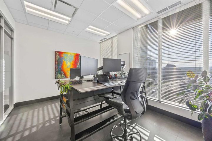 Stunning TURN KEY Downtown OFFICE CONDO with River Views!! Discover a rare opportunity to own a FULLY FURNISHED, MOVE IN READY office condo in the prestigious Solaire building in Calgary’s downtown West End. Featuring 4 private offices, a modern kitchen, reception area and 1 titled underground parking stall. Wow! This spacious suite is designed to impress clients and provide comfort for your team. Step inside to a high-end professional buildout highlighted by elegant tile flooring, sleek modern décor, soaring 10-foot ceilings, and floor-to-ceiling windows that flood the space with natural light while showcasing breathtaking river views. The kitchen is finished with espresso cabinetry, granite countertops, and stainless steel appliances, making them perfect for staff breaks or hosting meetings. This office is being sold fully furnished, complete with all workstations and chairs included—an ideal turn-key solution for businesses looking to transition seamlessly into a professional downtown space. The Solaire building offers unmatched amenities rarely found in office settings, including a concierge, on-site security, fitness facility, car wash bay, and bike storage. Its unbeatable location is just steps from the 8th Street C-Train station, the river pathways, and some of Calgary’s best dining and entertainment. Whether you’re a growing company or an investor seeking a versatile downtown property, this office condo checks all the boxes. Get ahead of the resurging downtown office market and take advantage of this amazing opportunity today!