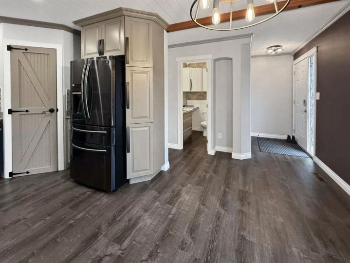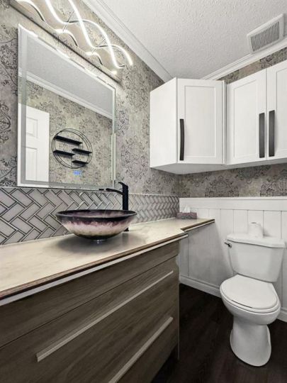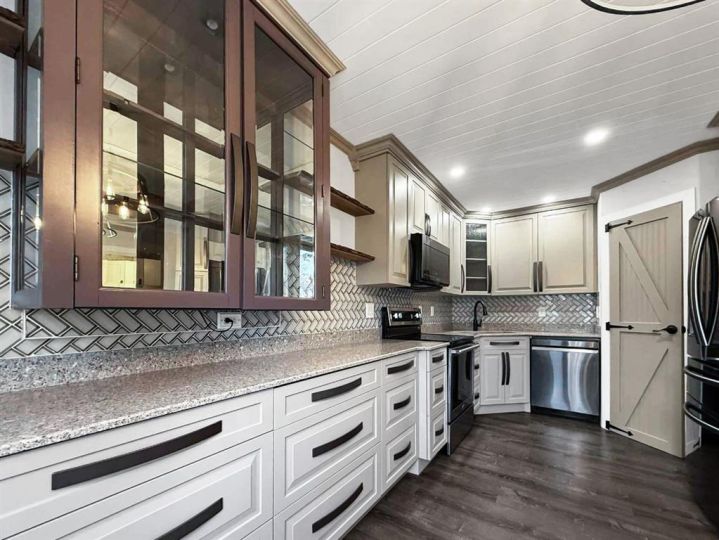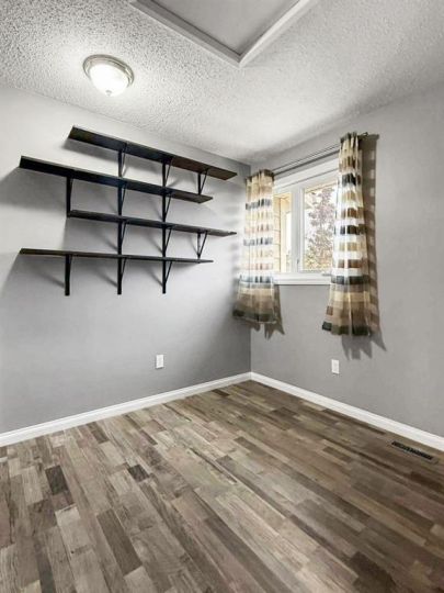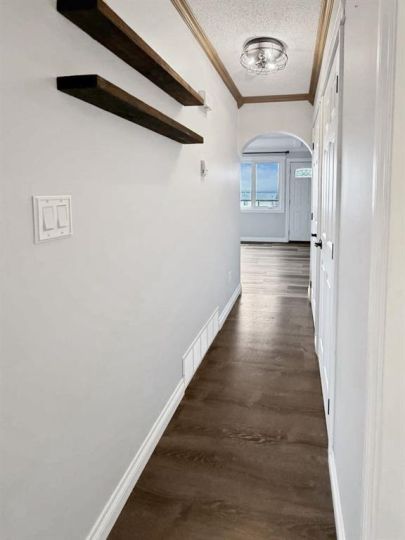 This one-of-a-kind condo on 97th Avenue is truly unlike anything you've seen before. Every inch showcases thoughtful design and incredible workmanship. As you enter, you're greeted by a stunning kitchen featuring ample cabinetry, new appliances, and even a dedicated pantry space. Just off the kitchen is a beautifully renovated 2-piece bathroom. Continue through the hall, taking note of the charming rounded archways, and step into the warm and inviting living room—complete with an electric fireplace and mantel. From here, walk out onto your private deck (one of the few units that has one!) and enjoy breathtaking mountain views. Rustic meets elegance is the theme throughout this unique home. Upstairs, you’ll find three bedrooms, including the primary suite which features a large walk-in closet with built-ins and pristine views of the mountains. A renovated 4-piece bathroom completes the upper level. The walkout basement offers partial development, including a brand-new 4-piece bathroom. You’ll also find a new hot water tank and new furnace here. Step outside to your backyard—beautifully bricked and home to a large, charming shed that’s just as cute as the condo itself.