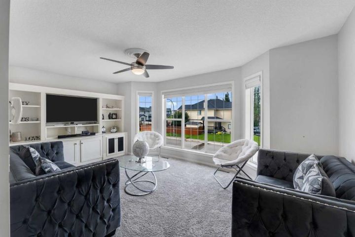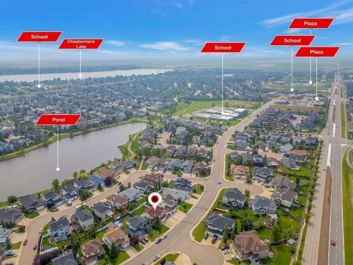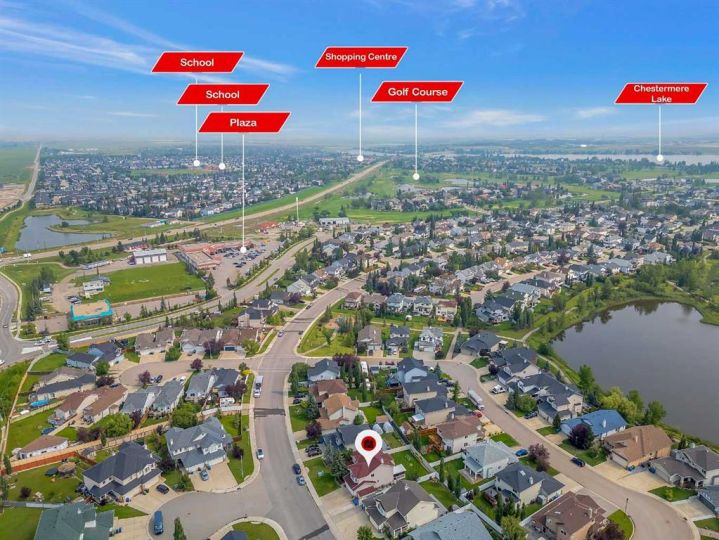 6200+ SQFT LOT! 2900+ SQFT OF TOTAL LIVING SPACE! WALKING DISTANCE TO SCHOOL AND PLAZAS! CENTRAL AC! Welcome to this beautiful home in the West Creek area of Chestermere! Chestermere is a family-friendly and growing lake centric city offering many amenities and a calm and relaxed way of life! This BEAUTIFUL home sits on a 6200+ SQFT FULLY FENCED LOT with an OVERSIZED FRONT DRIVEWAY! From the FRONT PORCH step inside to be greeted with OPEN TO ABOVE SPACE in the FOYER! Make your way to the HUGE FAMILY ROOM fitted with a GAS FIREPLACE overlooking your OVERSIZED DECK! The KITCHEN is perfect for those looking to MEAL PREP, or COOK DINNER FOR GUESTS with TONS OF COUNTER SPACE AND STORAGE, in addition to the PANTRY AND KITCHEN ISLAND! The DINING ROOM connects you to the SUNROOM perfect for those hot sunny days or for those rainy days! There is also LAUNDRY and a 2PC BATHROOM on the MAIN FLOOR. The UPPER LEVEL has PLENTY TO OFFER with a HUGE BONUS ROOM, perfect for the kids or for game/movie night! There are 3 BEDROOMS ON THE MAIN LEVEL (ONE OF WHICH IS THE GRAND MASTER BEDROOM WITH A W.I.C. AND A BEAUTIFULLY RENOVATED 4PC ENSUITE!) There is also an additional 4PC BATHROOM on the UPPER LEVEL! The BASEMENT is a movie enthusiasts dream! Completed with a BAR and a BUILT IN MOVIE THEATRE SYSTEM (INCLUDED WITH THE HOME) be prepared to watch all your fan favorites or play your video games in the PERFECT ENVIRONMENT! There is also a GAS FIREPLACE in the basement as well as a GYM ROOM/OFFICE AND ANOTHER 4PC BATHROOM! Don't forget that the HOME includes CENTRAL A/C with newer FURNACE, HOT WATER TANK AND MORE!