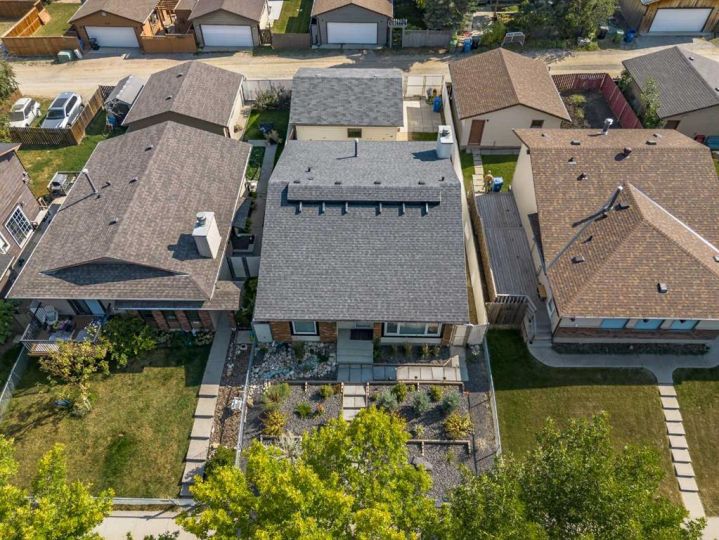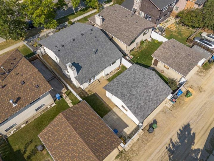 A house built when simple things still felt new, built to last, built to keep going. Inside is a front living room with a wide picture window pouring in light, vaulted ceilings, and Maple floors. In the kitchen, granite counters wait for coffee rings, cookie crumbs, and whatever else life throws at them. Windows were swapped out and bathrooms redone within the last 10 years, and the list of recent upgrades is long: new front screen door, relabeled electrical panel, a new sump pump, a new 50-gallon hot water tank, a new dining room window, new springs on the garage door, a new egress window in the basement bedroom, three new smoke detectors and two CO2 detectors, new tile in the primary ensuite, recent garage door repairs, plus grounded electrical issues in the garage being corrected. Two living spaces upstairs — the front is light and calm, the back features a wood-burning fireplace that changes the feel of the whole room. Three bedrooms on the main floor and two full bathrooms, including a modern update of clean tile and polished stone. The main suite features a large window and two closets with loads of shelving. The basement runs deep — fully finished, with room for games, working out, or a quiet home office, along with a fourth bedroom with a proper egress window and another full bathroom with its own linen closet. The large furnace room provides excellent storage. Outside, the yard offers clean lines with rock, shrubs, and perennials blooming from spring to fall. The oversized detached garage includes all upcoming exterior improvements as part of the approved claim: new siding to match the house, a new roof to match the house, and new downspouts and eaves, all scheduled for completion in the spring. There’s also an RV pad with room for cars, trailers, or a camper. Nose Hill is at your doorstep. Groceries, schools, parks, and major routes are close by, making daily life easy and convenient.
