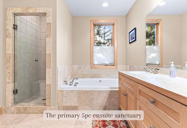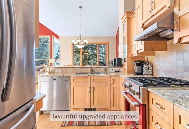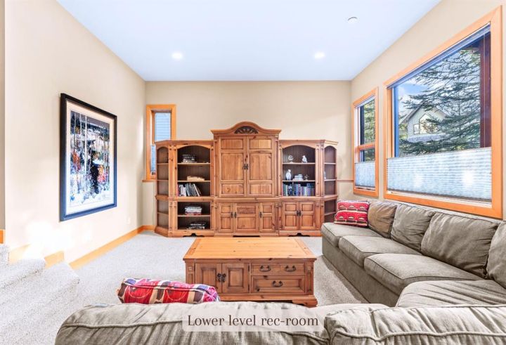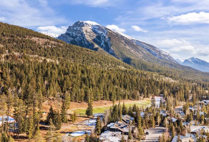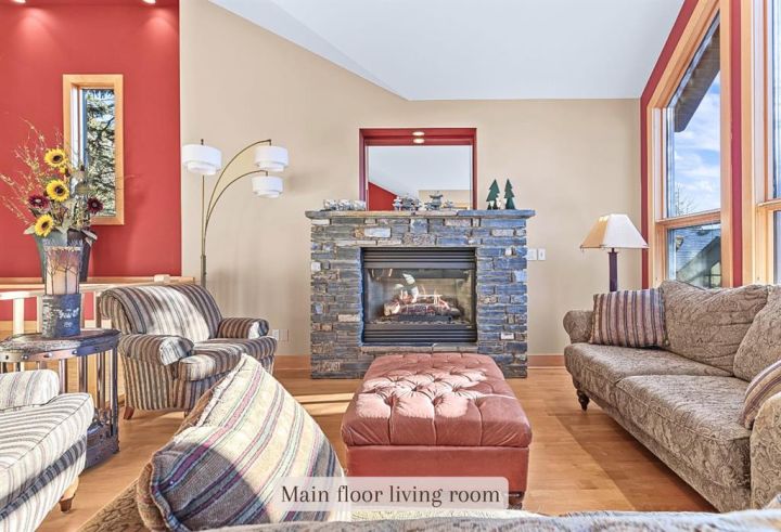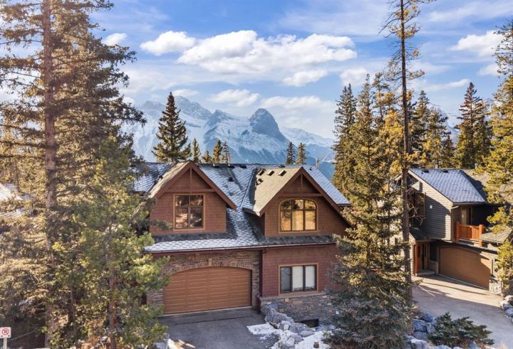 A beautifully designed mountain-style townhome, with 2,731 sq ft of living space (4 bedrooms & 3 bathrooms) in Silvertip Golf Resort. This quality Kidner built home is set on a peaceful dead-end cul-de-sac which provides a true sense of escape & tranquility. Carefully maintained and finished with a touch of flair (Love the stylish red oven!) The great room features soaring vaulted ceilings highlighting the South facing mountain views, pairs nicely with the treed privacy. Ideal as a year round home it features two cozy Rundle stone fireplaces, as well as comfort inspiring air-conditioned to combat the summer heat. In 2022 the charming kitchen received a new stove & dishwasher, along with a new furnace and AC that year too. The perfect maintenance free home, complete with a spacious double garage & driveway to accommodate vehicles and all your outdoor gear. With 4 bedrooms and 3 full bathrooms, this home has room for family, guests, and a dedicated work from home space. The expansive lower-level family room with its high ceilings, cozy in-floor heat, and walkout patio access adds even more flexible living space. Steps from the trail network and tucked away from the busy downtown core, this townhome makes it easy to enjoy the quiet side of mountain living in Canmore.