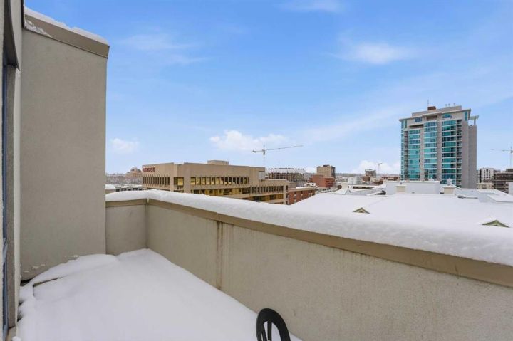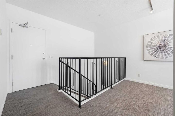 This 2 storey penthouse enjoys uninterrupted 180° city views and a bright, inviting layout designed for relaxed living and effortless entertaining. Soaring 18’ ceiling height combines with oversized windows to create an uplifting main floor living room where natural light defines the space, while a gas fireplace adds warmth on cooler evenings. Patio sliders extend the room onto the 1st west facing balcony where skyline views set a stunning backdrop for morning coffees, quiet breaks or casual after-work unwinding. Beautifully updated, the kitchen delivers abundant 2 toned cabinetry, generous prep space, a raised breakfast bar for easy meals and clear sightlines into the dining area that supports comfortable hosting. A bold chevron feature wall and distinctive lighting give the dining room character and personality, adding visual interest without sacrificing function. Conveniently a powder room and in-suite laundry complete the main level. Ascend the modern geometric railed staircase to the upper level where an open to below loft provides valuable flexibility for a home office, creative studio or fitness space. The primary bedroom offers a restful retreat with access to the 2nd west balcony, ideal for peaceful evenings or weekend lounging and includes a walk-in closet for practical storage. A second bedroom sits nearby and pairs easily with a well kept 4 piece bathroom. Titled underground parking adds to your safety and convenience. Phenomenally location to support an easy, walkable lifestyle with immediate access to favourite local pubs, restaurants and cafés along both 4th Street and Uptown 17th. Enjoy the close proximity to the LRT Station, downtown core, Stampede Park and the MNP Community & Sport Centre all within minutes, while surrounding amenities deliver endless options for shopping, fitness and entertainment. This penthouse blends lively urban energy with private top floor comfort in one of Calgary’s most connected inner-city settings.