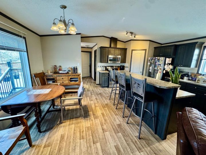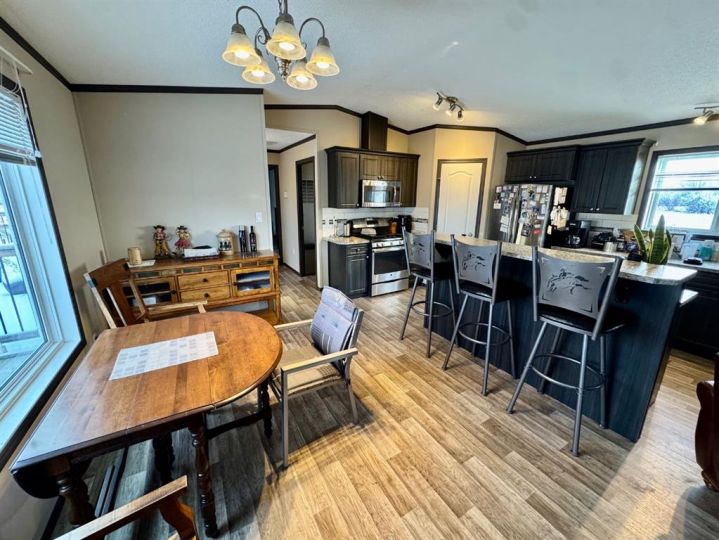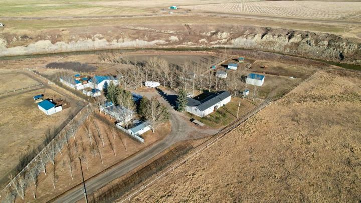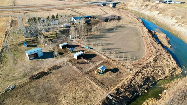 8.79 Acres to call your own with a creek running along the property. This acreage is set up to enjoy the outdoors with your horses. Follow the driveway around to the private tree lined yard which features room for your trucks, tractors and trailers plus a Heated barn with stalls and a tack room. You get a number of pens for your animals and a nice big riding arena too! The manufactured home is bright and open with 3 bedrooms and very nice kitchen and dining area. There's an attached 20x30 garage with lots of storage space and a 2 piece bathroom for washing up before you go in the house. Outside also has a deck and a patio area with stone fireplace for relaxing evenings with the family.