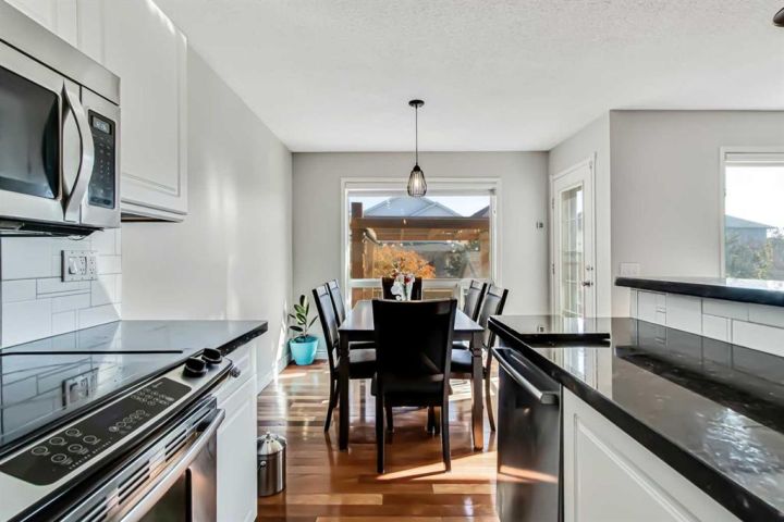 Stunning 2-storey family home offering over 2,300 sq. ft. of living space in the highly sought-after Coral Springs lake community. Ideally located on a quiet cul-de-sac and just minutes from schools, shopping, playgrounds, the lake, and all essential amenities, this property combines convenience with exceptional community living. Step inside to a bright, open foyer highlighted by vaulted ceilings and expansive windows that fill the home with natural light. The main floor features a warm and inviting living room with a gas fireplace, a formal dining room, and a beautifully upgraded chef’s kitchen complete with granite countertops, a multi-level island with breakfast bar, and a spacious walk-in pantry. A dedicated home office, convenient 2-piece bathroom, and main-floor laundry further enhance the functionality of this level. Upstairs, the primary bedroom offers a peaceful retreat with a 3-piece ensuite and walk-in closet. Two additional well-sized bedrooms and a 4-piece main bathroom provide comfortable accommodations for family or guests. The fully developed LEGAL basement suite is an outstanding bonus, featuring a separate side entrance, a large family room, full kitchen, 4th bedroom, and 4-piece bathroom—ideal for multi-generational living or an excellent rental opportunity. Outside, enjoy a beautifully landscaped backyard designed for relaxation and entertaining. This private outdoor space includes a large deck with pergola, an exposed concrete patio, mature trees, and thoughtfully arranged garden beds. A practical garden shed offers additional storage for yard tools and seasonal items. Experience the best of lakeside living with exclusive access to the Coral Springs Lake—perfect for year-round enjoyment.
