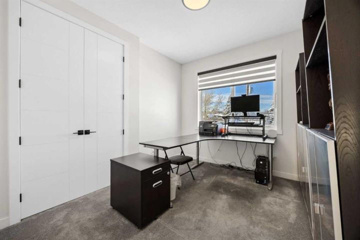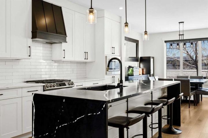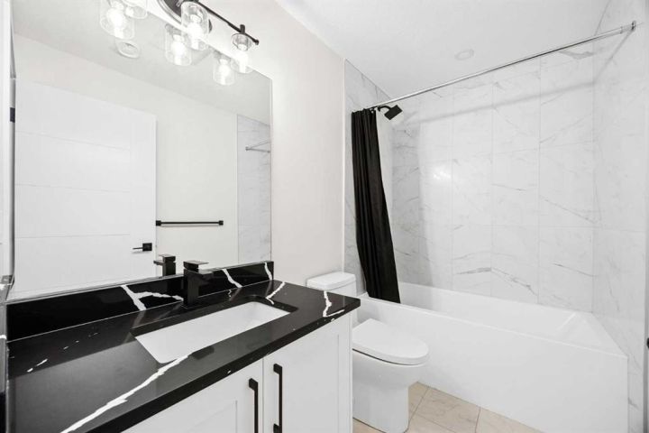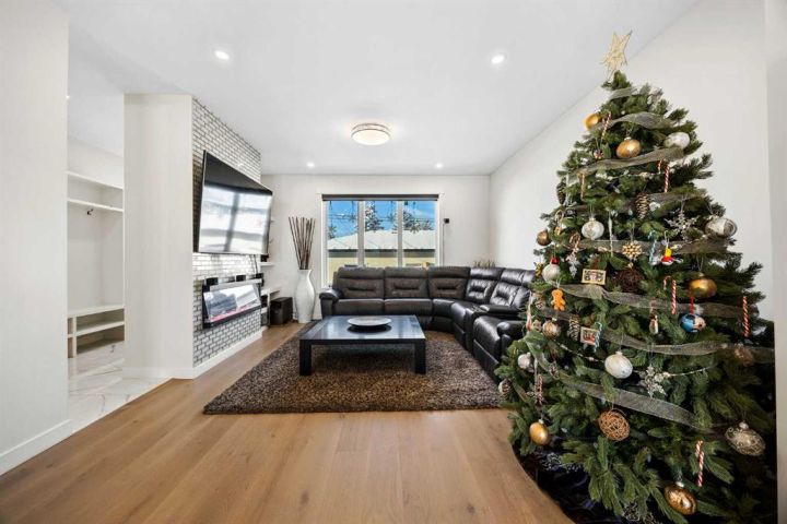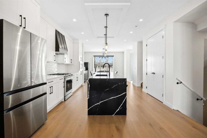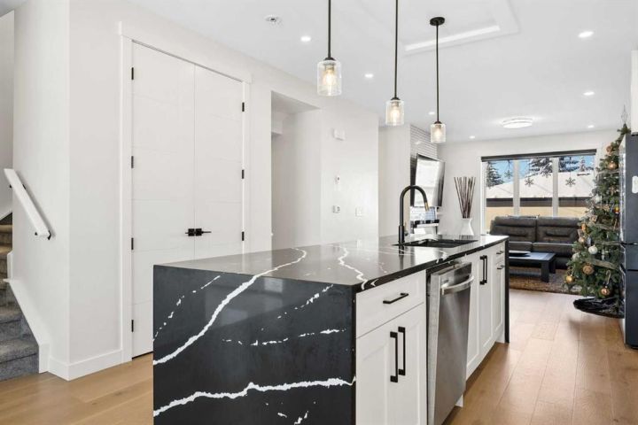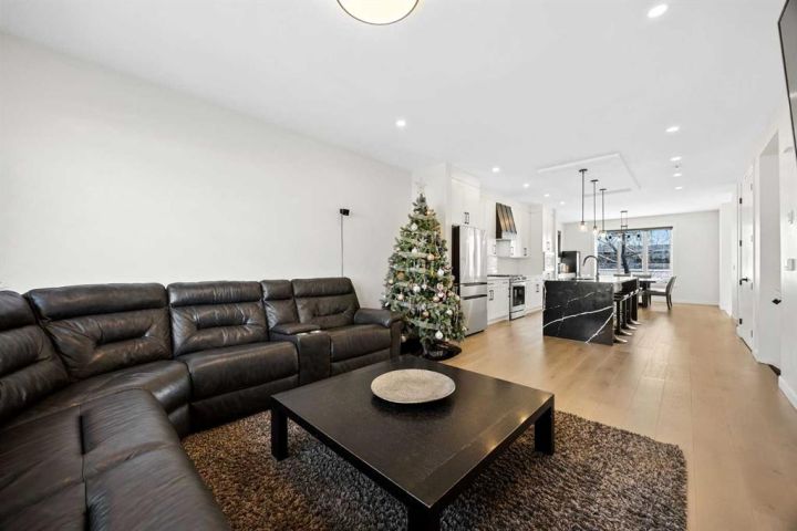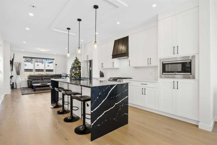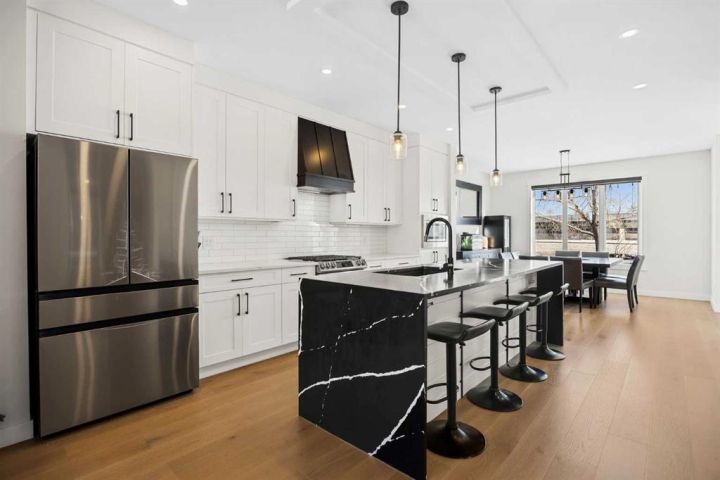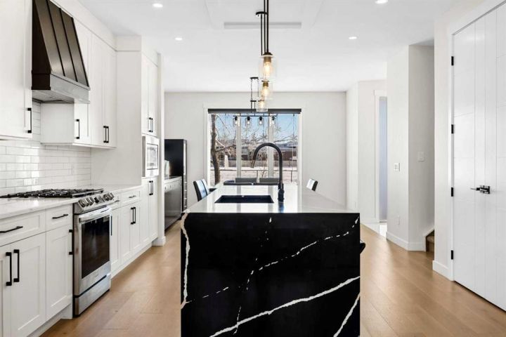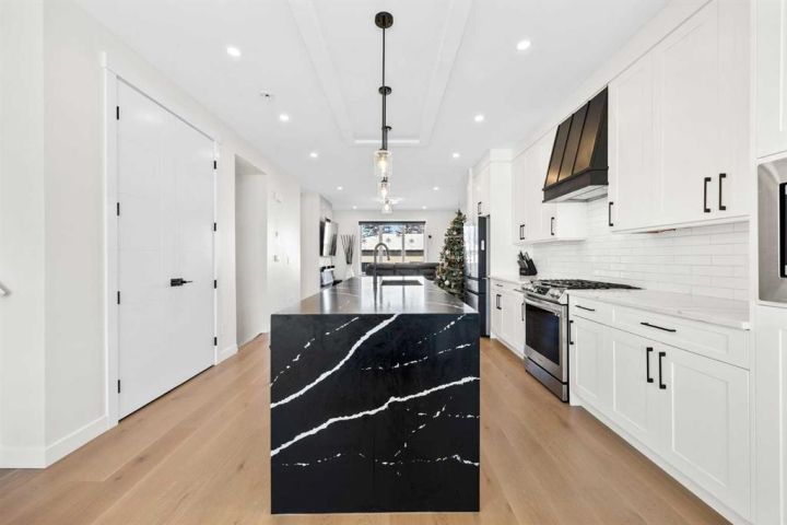 This beautiful 2-storey infill is tucked along a quiet, tree-lined street in the heart of Bowness and offers the perfect blend of style, comfort, and value. With a bright west-facing backyard and easy access to Bowness Park, schools, shops, and major routes, this home delivers everyday convenience in a family-friendly location. Step inside to a thoughtfully designed layout with 9’ ceilings on all levels, hardwood flooring, and a kitchen that truly stands out. Sleek black finishes, a striking waterfall-style quartz island, and quartz counters in every bathroom give the home a clean, modern feel. The main floor also features a spacious living room with a fireplace, a dedicated dining area, a convenient mudroom, and a 2-piece bath. Upstairs, you’ll find three comfortable bedrooms, including a generous primary suite with a large walk-in closet and a 5-piece ensuite. A full 4-piece bathroom, upper-floor laundry, and a bright bonus loft complete this level. The fully finished basement adds even more functional space with a large rec room, a stylish wet bar with an Arctic King mini fridge, a full bathroom, and a fourth bedroom—ideal for guests or extended family. Outside, the west-facing backyard is ready for year-round enjoyment with a deck, patio, BBQ area, and plenty of green space—including fresh raspberry bushes. A 6-person Cal Spas hot tub sits on a dedicated cement pad with underground electrical tied to the garage and two exterior kill switches. The sellers can leave it behind or remove it—your choice. This home also comes loaded with thoughtful extras: • MET Blinds throughout, including three motorized blinds with remotes • Central vacuum system (Nilfisk Supreme 150 powerhead kit – hospital-grade, allergen-free) • Whirlpool Sport white washer & dryer • Oversized two-car garage with great storage A beautifully built infill with premium finishes, smart upgrades, and a fantastic location—offered at exceptional value.
