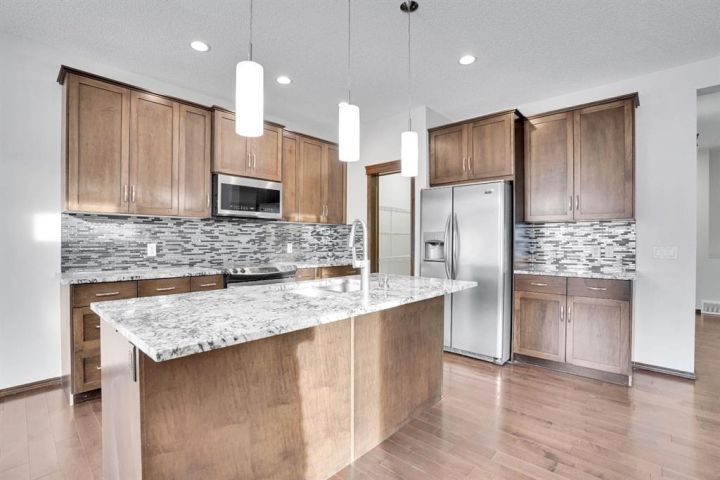 A Warm and Inviting Family Home located on a quite street in Evergreen. Step into this beautifully maintained home and feel instantly welcomed by its thoughtful layout and cozy charm. The main floor is designed with family living in mind, featuring a spacious home office perfect for remote work or homework sessions, and a convenient laundry room to make daily chores a breeze. The heart of the home is the open-concept living area with fire place and kitchen where you'll find stainless steel appliances and a walkthrough corner pantry. Upstairs, you'll find three generously sized bedrooms, including a serene primary suite with 4 pc washroom and walk-in closet, plus a bonus room that’s perfect for a playroom, media space, or teen hangout. Two other bedrooms and a full washroom completes the upper floor. The fully finished basement offers even more space with an additional bedroom, a full bathroom, and a large recreation room—ideal for guests, hobbies, or family movie nights. Located in a friendly, family-oriented neighborhood, just minutes from Fish Creek Park, this home is close to schools, parks, and all the amenities your family needs. Recent updates include roof (2022), hot water tank (2022), and sidings (2022) for added peace of mind. Don’t miss your chance to make this wonderful home yours—schedule a private showing today and experience all that Evergreen has to offer!