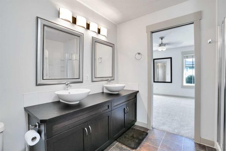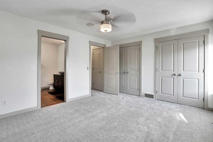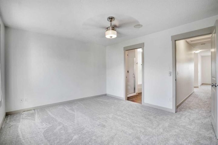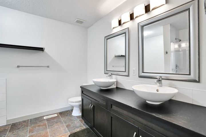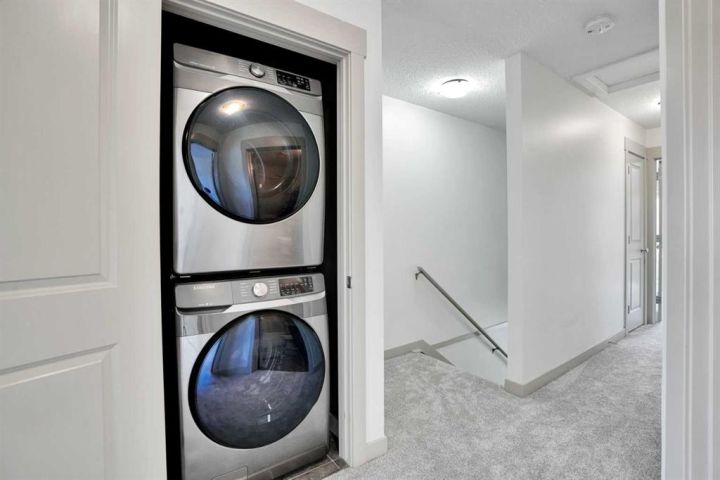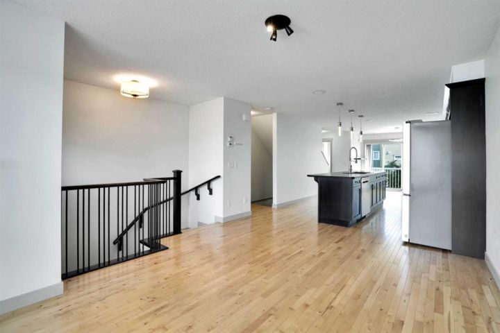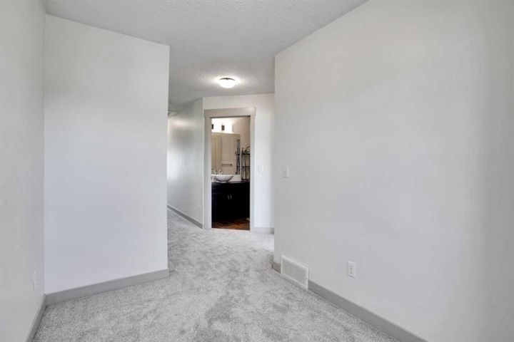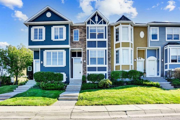 Do you dream of living in a modern townhouse, with HEATED double car garage, be just blocks to schools, shopping, even a bike park, with luxurious new carpet and a great kitchen AND still be able to afford it? This is your NEW HOME. The heart of home, the kitchen, has an immense central island, ideal for your family to gather around. Upgraded appliances (space saving microwave hoodfan combo, easy to clean glass top stove, and french style fridge with TWO ice makers). Rich dark cabinetry, glass tile backsplash, and oodles of cabinets will ensure you relish your time here. The party can flow towards the front, into the living room, or toward the rear, all adorned with REAL maple hardwood floors, and onto the small balcony. The balcony hosts the CENTRAL AIR CONDITIONER, ensuring you keep cool and comfortable. Upstairs you'll find a den that could be converted into a THIRD bedroom, should the need arise, to join the existing 2 other bedrooms. One being the master retreat, complete with his / her closets, and a 5 piece decadent ensuite with large soaker tub, seperate shower, and dual sinks. The upstairs laundry is a godsend, no more carrying up/down. All of the carpet is NEW (August 2025). Central vac to help with easy cleaning. Likely the MOST convenient location in Chestermere. Kids walk 500 feet to an elementary school. Circle K, gas, several restaurants, and pharmacy are 300 feet away. An amazing bike park is 500 feet away. Larger shopping at No-Frills is 1/2 a kilometer; ultimate shopping is under 4 miles to East Hills (Walmart, Costco + more). Picturesque Rainbow Falls is a short walk, where you can then stroll along the pathway system for MILES that connect all of west Chestermere. The condo lifestyle enables you to ENJOY your life, rather than be a slave to yardwork and shoveling snow. Tons of upgrades, great location, AIR CONDITIONING. Where else can you get affordable luxury like this. Call today for your viewing.