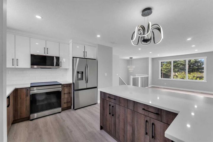 FULLY RENOVATED!! ILLEGAL BASEMENT SUITE!! SEPARATE ENTRANCE!! OVERSIZED DOUBLE DETACHED GARAGE (23'4" x 23'5")!! SEPARATE LAUNDRY ON BOTH LEVELS!! CONCRETE SIDE LANES!! 1900 SQFT OF LIVING SPACE!! 4 BED 2.5 BATH!! Step inside to a bright and welcoming main floor featuring a spacious living area, a dining space, and a stylish kitchen with stainless steel appliances and beautiful cabinetry. This level offers 3 BEDROOMS, including a primary bedroom with a private 2PC ENSUITE BATH, plus a full 4PC MAIN BATH and laundry on the same floor. The kitchen leads out to the backyard with a cozy deck—great for relaxing or hosting friends. The ILLEGAL BASEMENT SUITE with a SEPARATE ENTRANCE offers its own kitchen, dining area, and a large rec room with a fireplace. There’s also a bedroom, 4-piece bathroom, laundry, and extra storage. The oversized double detached garage adds plenty of space, and the concrete on both sides keeps things clean and low-maintenance. Conveniently located near schools, shopping, parks, and transit—this home has it all!