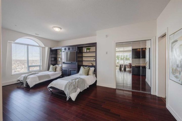 Some homes elevate your life. Others redefine it. The penthouse at the Renaissance is one of those rare residences: released to the market only once in decades, and cherished by long-term owners who value privacy, security and timeless elegance. Set high above the city, this nearly 2,000 sq. ft. penthouse with a 600+ sq. ft. wraparound terrace feels more like a private retreat than a condominium. Sunlight pours through expansive windows, framing views of the river valley and distant mountains your daily reminder that life is meant to be savoured. Designed for those entering their next, most effortless chapter, the home offers two gracious bedrooms, a dedicated den, formal entertaining spaces and quiet corners for reflection. Every room invites conversation, connection and comfort. For snowbirds, world travelers, philanthropists and retirees who split their time between homes, the Renaissance delivers a lock-and-leave lifestyle without compromise: 24-hour monitored security & concierge Two titled, heated underground parking stalls plus storage Direct indoor access to groceries, cafés, medical services & amenities Steps to LRT, Foothills & the University convenience without chaos A highly respected, owner-occupied building with exceptional management Amenities include: fitness room, cinema, boardroom, party room and guest suites The terrace is where memories unfold: summer dinners, family celebrations, morning coffee above the city, sunsets that feel curated just for you. Homes like this are not built anymore. And they are not listed often. The penthouse is more than an address, it's a legacy residence for those who value beauty, ease, connection and time. For the fortunate few, this is Calgary living at its most effortless and refined.