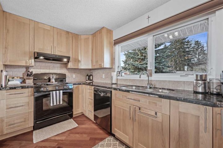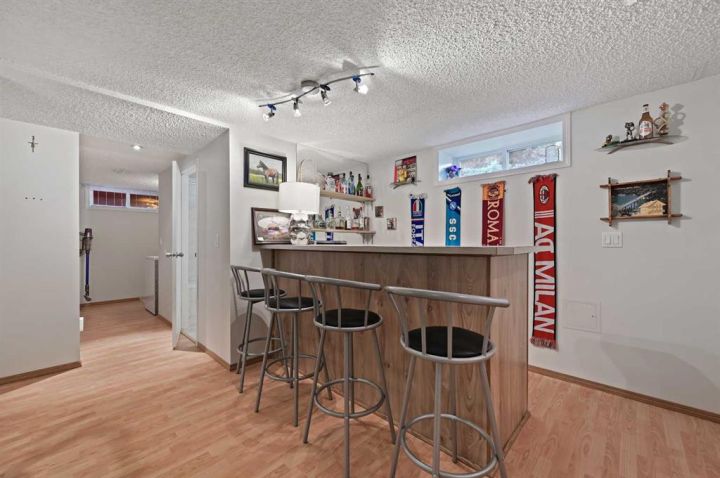This beautifully maintained and extensively upgraded home offers nearly 1,800 sq. ft. of finished living space and is loaded with premium features inside and out. Enjoy peace of mind with a brand-new roof (2025), updated electrical panel, and high-efficiency wood-burning fireplace—perfect for cozy evenings. The main living areas showcase rich mahogany hardwood flooring, solid cherry built-ins, and full-height solid wood cabinetry paired with elegant granite counter tops and a gas range—a dream setup for any home chef. The thoughtfully finished basement adds even more living space with updated laminate flooring, a stylish wet bar, and convenient under-stair cold storage. The bathrooms feature ceramic tile floors and a modern undermount sink, while added comforts include air conditioning, central Vacuflo, closet organizers, and updated vinyl windows throughout. Step outside to your private retreat with a composite deck, concrete patio, BBQ gas line, greenhouse, and a fully fenced, landscaped yard filled with perennials. There’s also a shed stocked with firewood for the winter months. Enjoy the sunny west-facing backyard, perfect for entertaining or relaxing year-round. Ideally located just 10 minutes to downtown, with Laycock Park and scenic walking paths directly across the street, and Deerfoot City shopping only minutes away—this home offers the perfect balance of comfort, functionality, and unbeatable convenience. A rare opportunity with outstanding upgrades, location, and lifestyle appeal—don’t miss it!