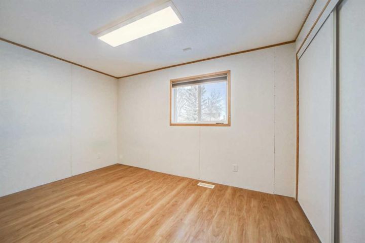 Move-in ready 3-bedroom, 2-bath home in a quiet, friendly Claresholm neighborhood. You own the land, so there are no monthly park fees. This home offers numerous updates including a dishwasher (2014), furnace (2014), half roof (2014), hot water tank (2015), AC installed brand new (2015), eavestroughs and downspouts (2025) and a new living room window (2025). A sump was installed under the lined underbelly to keep groundwater away. Enjoy a zero-maintenance yard, two decks, and two moveable storage sheds. The home has been well cared for and has all updated LED lighting, newer flooring and don't forget the AIR CONDITIONING for the hot summer days and the extra specialized insulated underbelly! ($5000). All you need to do is get packing! Close to walking paths, schools, and all the amenities you need! This home is vacant and ready for a quick possession! -schedule a showing with your favorite REALTOR® today!