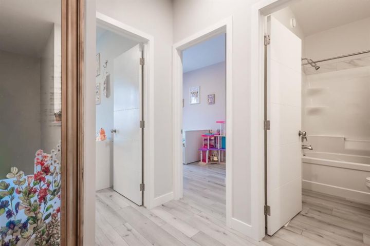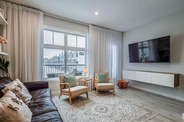 Welcome to 137 Les Jardins Park SE, a beautifully designed 3-bedroom townhouse offering modern comfort, smart layout, and an unbeatable location in one of Calgary’s most thoughtfully planned new communities. Set across three well-appointed levels, this home features a bright entry floor with a versatile flex space perfect for an office or family room, convenient in-unit storage, and an attached single garage. Upstairs, the main floor impresses with its open-concept design, large windows, and stylish finishes. The spacious kitchen includes generous counter space and a functional layout ideal for cooking and entertaining. A dedicated dining area, airy living room, a 2-pc bath, and a separate laundry room enhance everyday convenience. The upper level offers a well-planned 3-bedroom layout, including a generous primary suite with a private 3-pc ensuite. Two additional bedrooms and a full 4-pc bathroom provide excellent space for family, guests, or a home office. Located in Les Jardins close to Quarry Park, this community is inspired by European-style urban planning, offering beautifully landscaped green spaces, walking paths, playgrounds, and a strong focus on livability. Enjoy quick access to schools, shopping, the Quarry Park business district, the Bow River pathway system, and major roadways for an easy commute. A perfect blend of modern living and community charm. This home is move-in ready and waiting to welcome you.