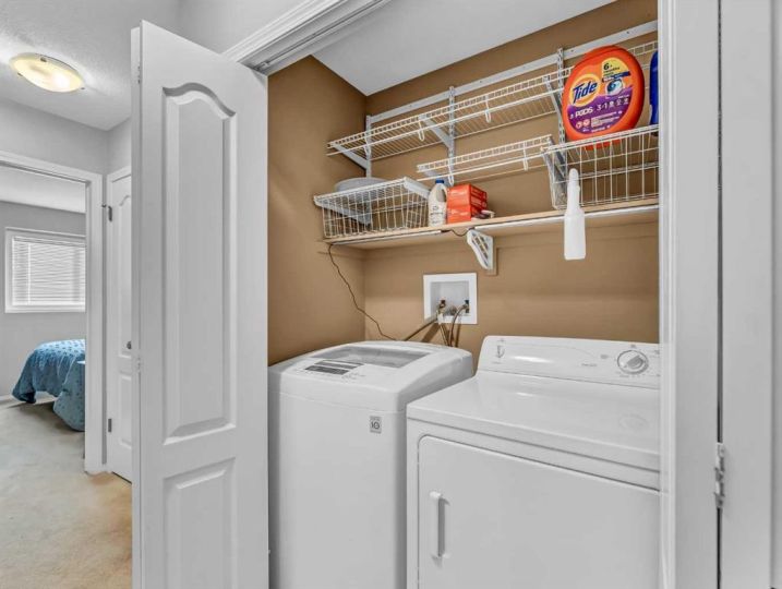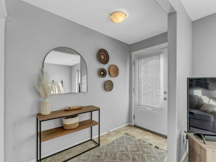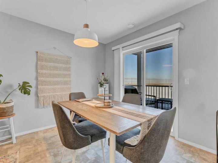 END UNIT CONDO WITH A VIEW—PLUS 2 PARKING STALLS (1 ELECTRIC)! Tucked into a very quiet corner of the complex, this well-maintained and truly loved end unit offers comfort, convenience, and beautiful prairie views. You’re welcomed by a spacious entrance that flows into a cozy living room and a generously sized kitchen/dining area. The kitchen features abundant cabinetry and counter space, complete with granite countertops. The main floor also includes additional storage under the stairs, a convenient 2-piece bathroom, and access to a private deck with extra storage and sweeping views of the open prairies. The upper level offers two good-sized bedrooms, including one with a walk-in closet, an upper-level laundry area, plenty of storage, and a large 4-piece bathroom. Condo fees of $276.06 cover heat, water, trash, snow removal, grounds maintenance, professional management, and reserve fund contributions. This pet-friendly complex (with board approval) has no age restrictions. Located within walking distance to a grocery store, pharmacy, gas station, and the Big Marble Go Centre, this home offers exceptional convenience. At a great price and in a fantastic location, you can finally enjoy the maintenance-free lifestyle you’ve been looking for.