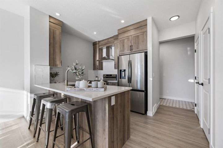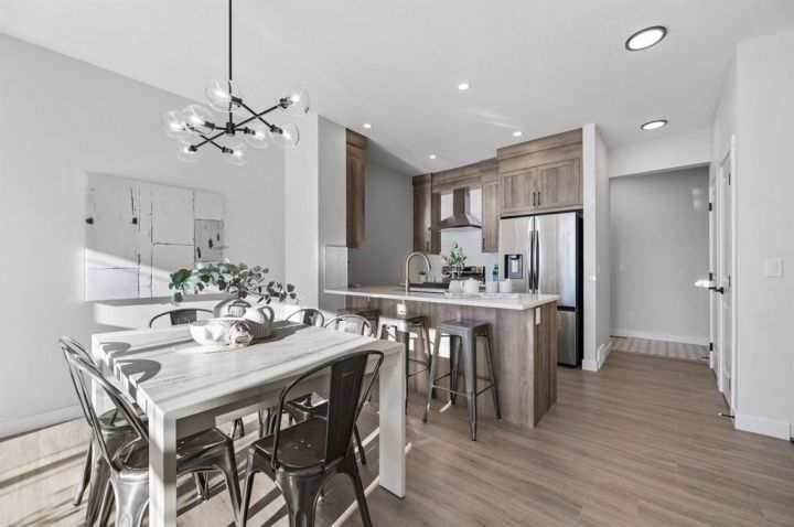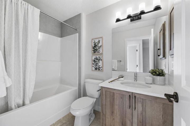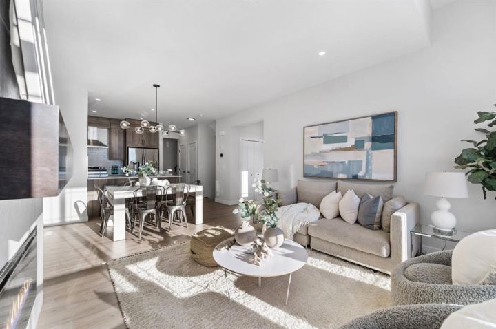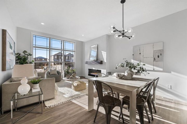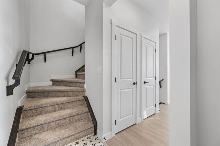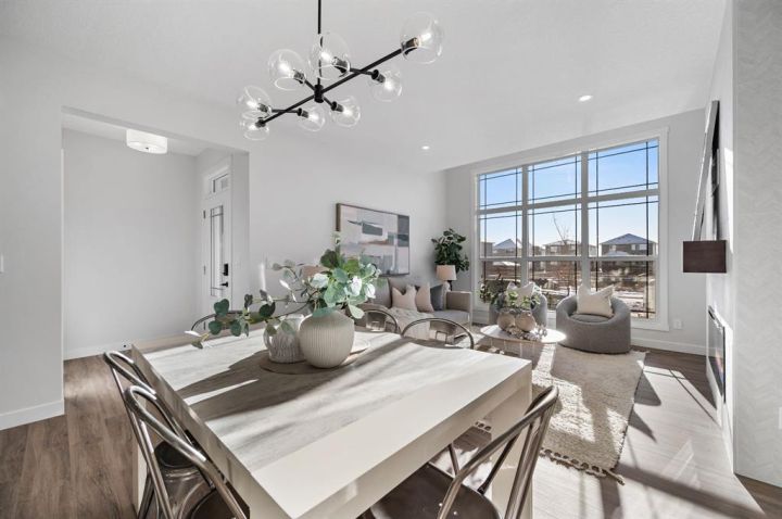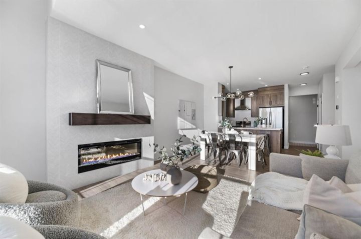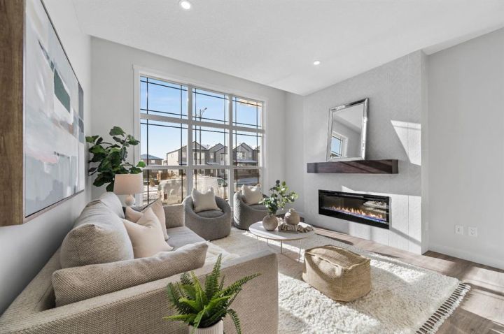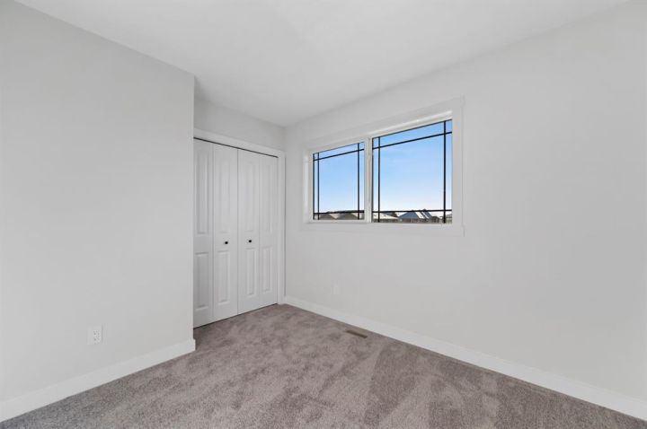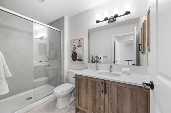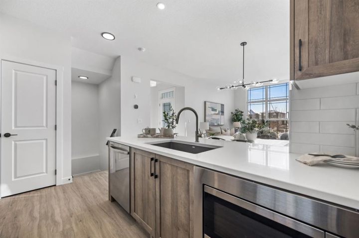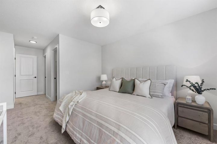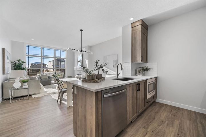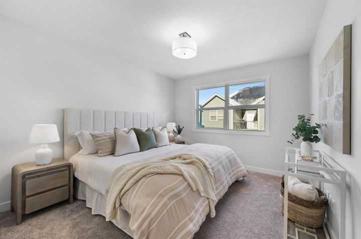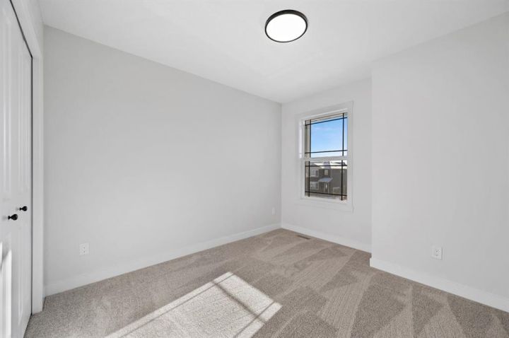 Genesis introduces the Jasper, a street-side luxury townhome with NO CONDO FEES! The Jasper townhome features an attached double garage, a rooftop patio, and low-maintenance living. The tastefully designed home offers over 1400 sq ft. of above-grade living space plus an unfinished basement with 9' ceilings, ready for your design ideas. On the main floor, you will find soaring ceilings in the open-concept living space and large windows that let natural light flow through. The chef-inspired kitchen offers sleek cabinetry and stone countertops and is well-equipped with stainless steel appliances. The kitchen is open to the dining and living room, perfect for entertaining family and friends. Complimenting the main floor is a convenient half bath, storage and entry from the attached 20 x 22 garage. Venturing upstairs, you will find a spacious primary retreat with a spa-like ensuite, a spacious shower, and a generous walk-in closet. Two additional bedrooms, a full bath, a 4-piece bath and laundry complete the upper level. Outside, enjoy spending time on your upper rooftop patio, which is situated above the garage. Bayview is a beautiful community with parks, benches and pathways that meander throughout the community and along the canals. Kids and adults alike will enjoy the outdoor basketball nets, gym, amphitheatre, and tennis courts, which convert into a skating rink in the winter. Come and see all the amenities the community offers for yourself! Area size was calculated by applying the RMS to the blueprints provided by the builder.
