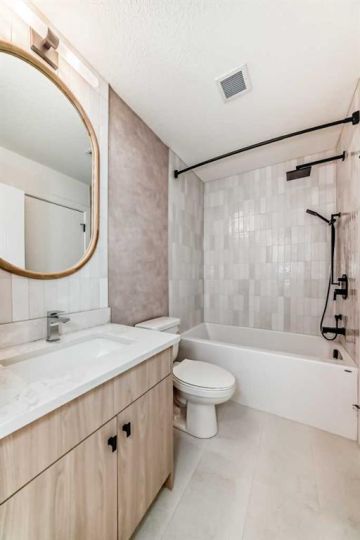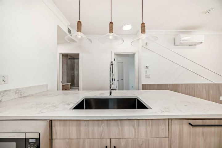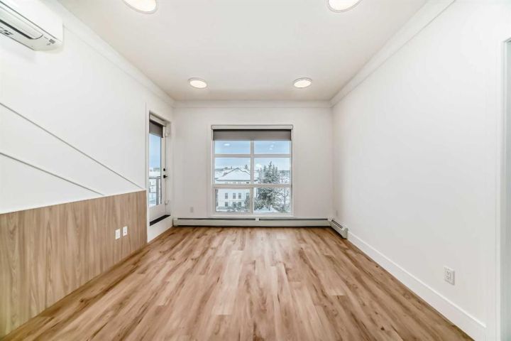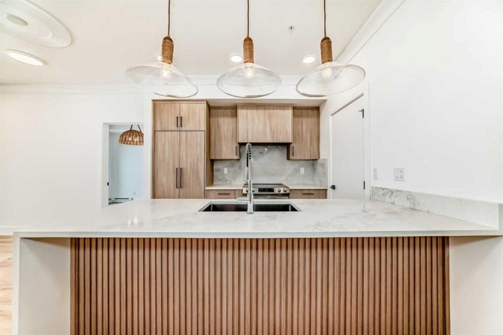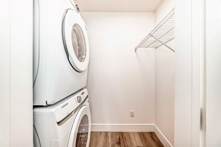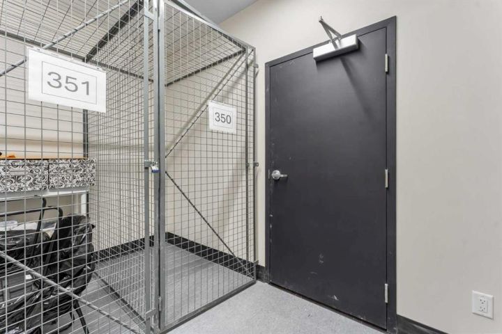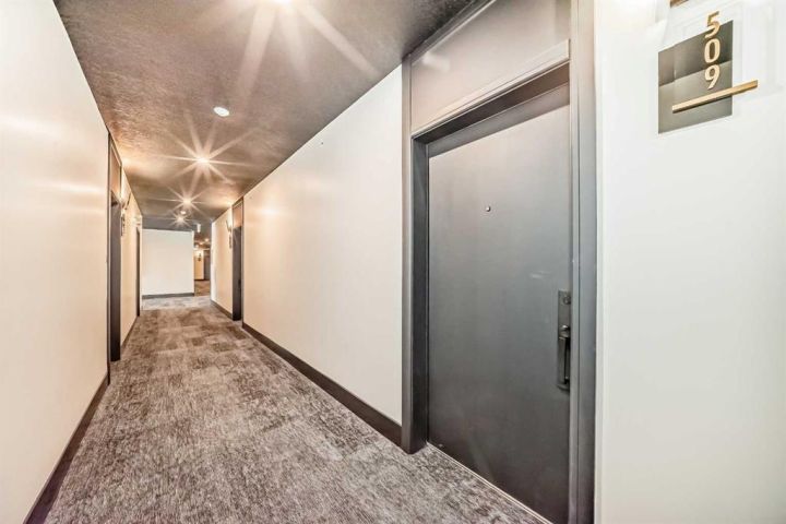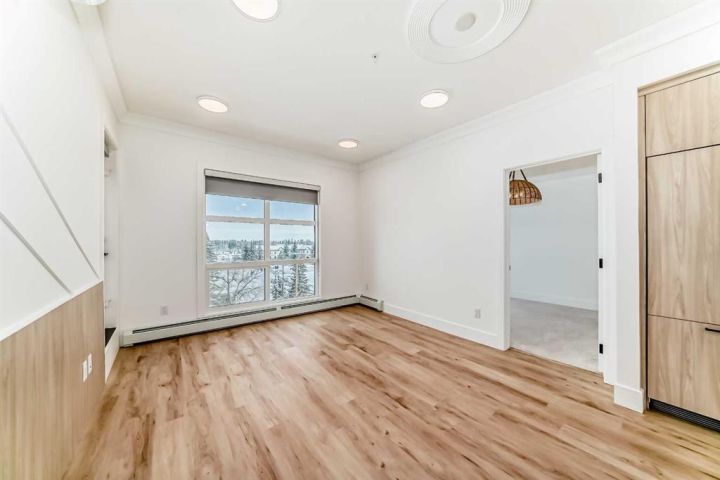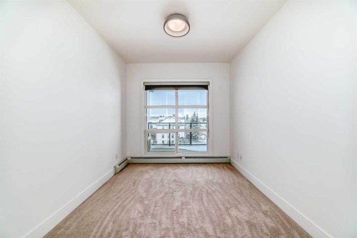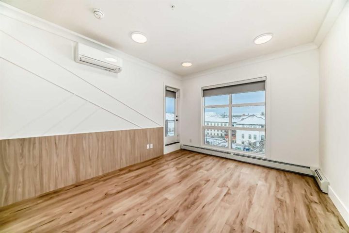 OPEN HOUSE Saturday Nov 29, 1-4pm. Welcome to the Quesnay in Calgary's historic Currie Barracks, a community built with a walkable urban design, heritage sites, bike paths, green spaces and dog parks, all minutes from the downtown core. This 2 bed, 2 bath offers an elevated living experience with unobstructed VIEWS of the DOWNTOWN SKYLINE and a front row seat to epic Calgary sunrises. The kitchen showcases a quartz waterfall countertop and panelled Fisher Paykel appliances, custom light fixtures and a designer feature wall. A private covered balcony, CENTRAL AIR CONDITIONING, titled underground parking stall and titled storage locker for comfortable, convenient living. Check the comparables, this one is priced to sell. Immediate possession.