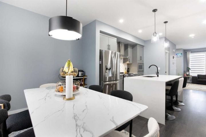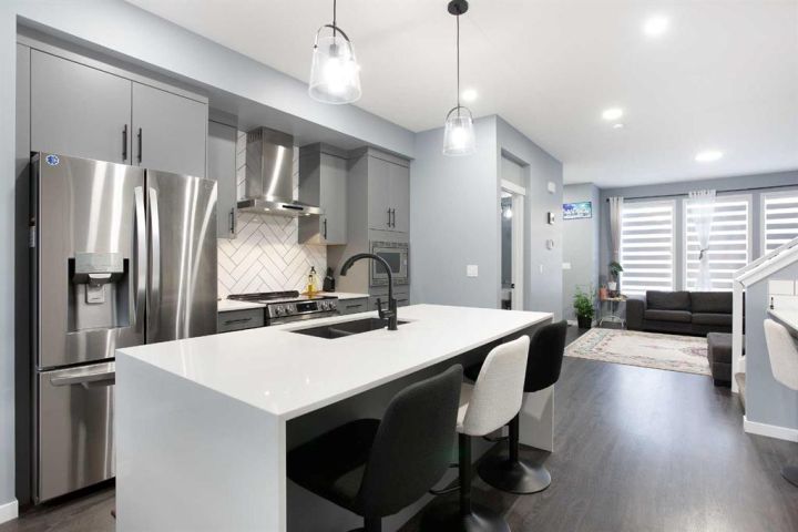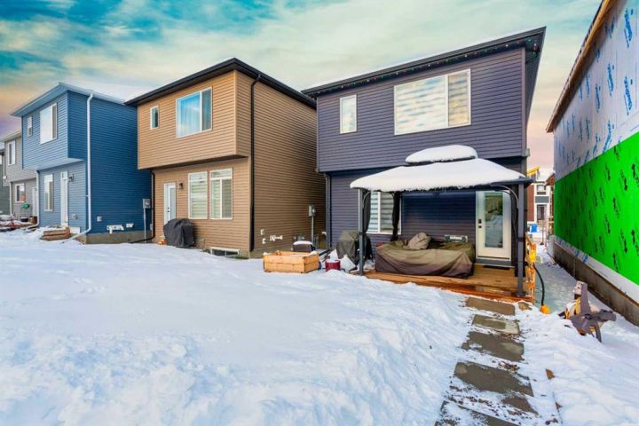 Welcome to this beautifully updated 3-bedroom, 2.5-bath Morrison-built home located in the vibrant, family-friendly community of Belmont, Calgary. Thoughtfully upgraded and meticulously maintained, this home combines modern style with exceptional functionality—perfect for families, professionals, or anyone seeking a move-in-ready home in a rapidly growing area. Step inside to an open and inviting main floor featuring luxury vinyl plank flooring, contemporary finishes, and large windows that fill the space with natural light. The stylish kitchen stands out with quartz countertops, stainless steel appliances, upgraded cabinetry, and a spacious island ideal for cooking, hosting, or casual dining. The adjoining living and dining areas create a seamless flow, making the space perfect for both everyday living and entertaining. Upstairs, you’ll find three generous bedrooms, including a serene primary suite complete with a walk-in closet and a private 4-piece ensuite. Two additional bedrooms, a full bathroom, and a convenient laundry area complete the upper level. Every room feels fresh, modern, and move-in ready. Outside, the property features a well-sized backyard with plenty of room for play, pets, or future personalization. Located just down the street from one of Belmont’s many upcoming commercial plaza, homeowners will soon enjoy walkable access to shops, services, and dining. Several parks, pathways, and playgrounds are within easy walking distance, making it an ideal setting for outdoor lovers and families. With extensive updates, quality construction, and an unbeatable location in one of Calgary’s fastest-growing communities, this Morrison-built home is an exceptional opportunity. Move in and enjoy comfort, convenience, and a lifestyle that continues to improve as the neighbourhood grows. Don't delay, book your showing today.