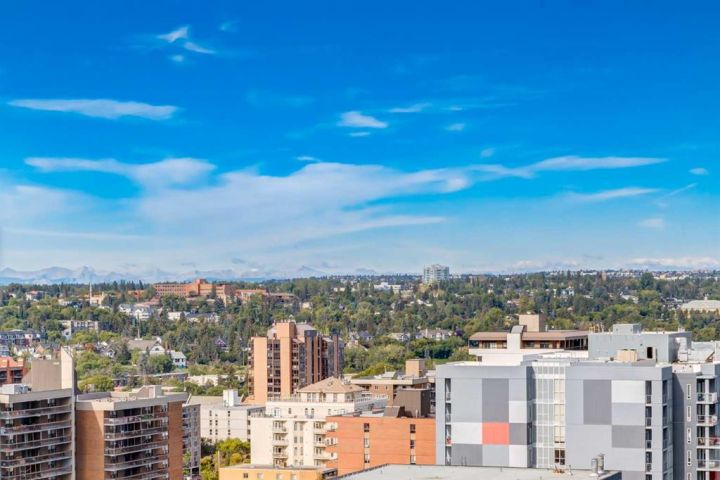 Enjoy life in the clouds as you look out from your new home on the 16th floor and soak in the gorgeous rocky mountain views by day and the glowing downtown skyline by night. This move in ready 2 bed, 2 bath *almost* 800 sq ft corner unit condo is filled with natural light thanks to its large windows and south and western exposures. The breathtaking sunsets and twinkling city lights views will never get old. The open-concept layout makes everyday living convenient and entertaining effortless. The living room is bright and inviting and flows into a functional kitchen with a breakfast bar and yes there is room for a table. Step outside onto the generously sized covered balcony where you can enjoy morning coffee, dine al fresco (it’s a great place to BBQ), unwind in the fresh air and take in your urban surroundings. You’ll find two great sized bedrooms, including a primary retreat with its own private 3pc ensuite and a second bedroom with easy access to another full 4pc bathroom making this floor plan ideal for roommates and hosting guests. Timeless vinyl plank flooring runs throughout the unit and in suite laundry means laundry day can be whenever you decide. BONUS: Your condo fees take care of the essentials: electricity, heat, and water/sewer, all rolled in! The excellently located building offers peace of mind and is the epitome of a ‘lock it and leave it’ lifestyle with 24-hour concierge/security services onsite. You’ll also enjoy access to a fully equipped fitness center, bike storage and your own secure, titled underground parking stall so you can say goodbye to scraping your windshield in freezing temperatures. When it comes to location, it doesn’t get much better: the grocery store is literally steps away, and you’re surrounded by some of the city’s best restaurants, coffee shops, pubs, boutiques and nightlife meaning you will always have something to do. Commuting is easy with the c-train and major roadways just minutes away. Add in the nearby River pathways for biking or walking, plus the vibrant energies from trendy neighbouring downtown districts like Kensington, and you’ve got the recipe for a truly magical inner-city lifestyle.
