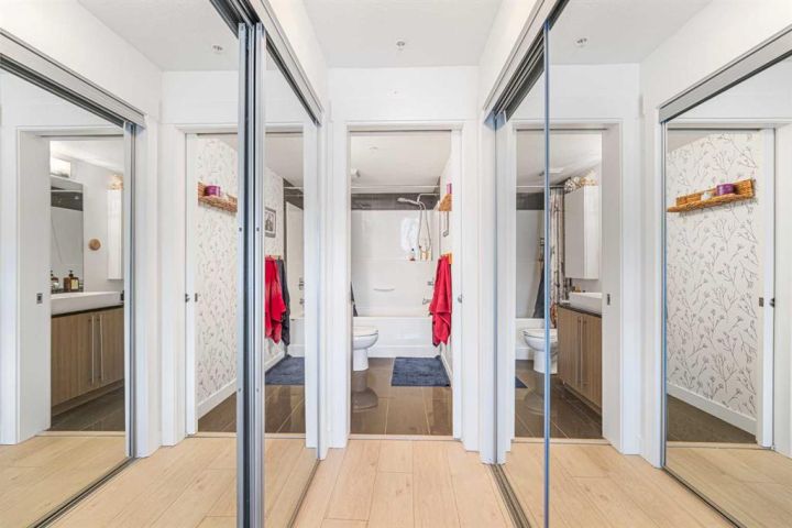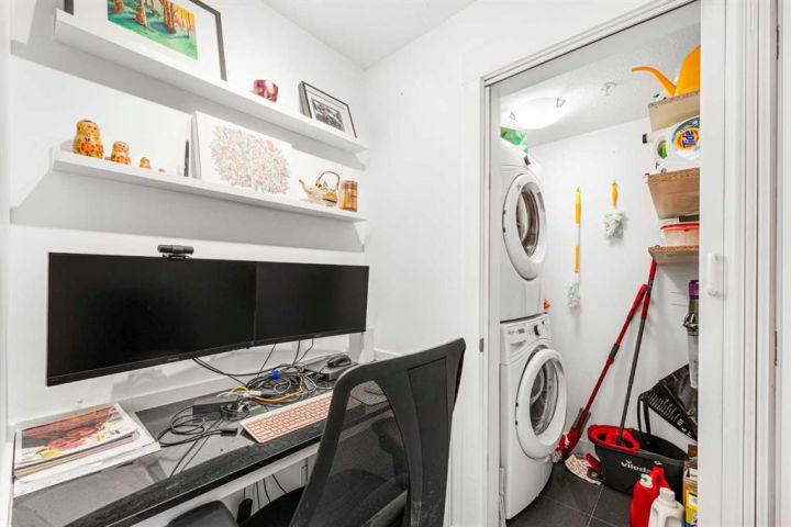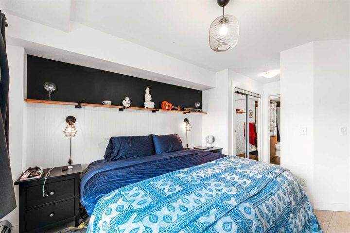 Welcome to 51 Oak! This stunning West-facing, 3rd-floor showstopper delivers pure STYLE & PIZZAZZ. Featuring a spacious 2 Bed (+ DEN), 2 Bath layout, this home is defined by airy laminate flooring, custom feature walls, and upgraded designer lighting throughout. The modern kitchen is a culinary dream, boasting floor-to-ceiling cabinetry, granite countertops, stainless steel appliances, and a sleek eat-in bar for quick meals. Flow seamlessly into the formal dining room, or retreat to the cozy, quiet den with discreetly integrated laundry. The living area serves as the heart of the home, anchored by a striking stone feature wall and sliding doors that open to your sun-drenched balcony. This unit offers the ultimate split-bedroom floorplan, ensuring superior privacy by separating the sleeping quarters with the living space. The primary retreat features walk-through his/her closets and a private ensuite, while the second bedroom is generously sized with adjacent bath access. Located steps from shopping and a short stroll to the Mahogany Beach Club, this is an unbeatable lifestyle opportunity. Call your REALTOR® today—at this price, it won't last long!