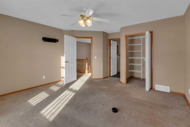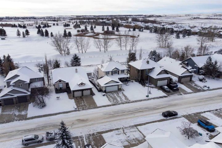 Discover exceptional value in this MOTIVATED SELLER offering—an incredible fully developed walkout 2-storey home with south facing backyard that backs directly onto greenspace, the Strathmore Golf Course, and a scenic walking path. Enjoy unmatched privacy, stunning views, and one of the largest yards in the area, perfect for outdoor living, gardening, or simply taking in the serene surroundings. Inside, the bright and spacious open-concept main floor is designed for comfort and entertaining. The welcoming family room flows seamlessly into the kitchen and dining area, while French doors lead to a 3-season room, ideal for morning coffee or evening relaxation. Convenient main floor laundry adds to the thoughtful layout. Upstairs you’ll find 3 bedrooms, including a generous primary suite featuring a walk-in closet, 4-piece ensuite, and a private south-facing balcony overlooking the golf course—your own peaceful retreat. The walkout lower level offers exceptional flexibility with a large recreational room complete with a second kitchen area—perfect for guests, in-laws, hobbies, or a future wet bar. This level also includes the fourth bedroom and an additional 4-piece bathroom, making it ideal for multi-generational living. With its special location, spacious floor plan, and versatile walkout design, this home is a must-see.